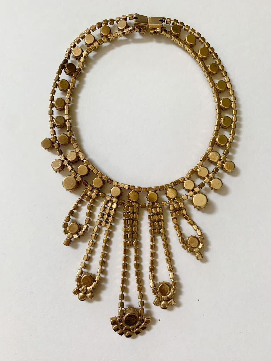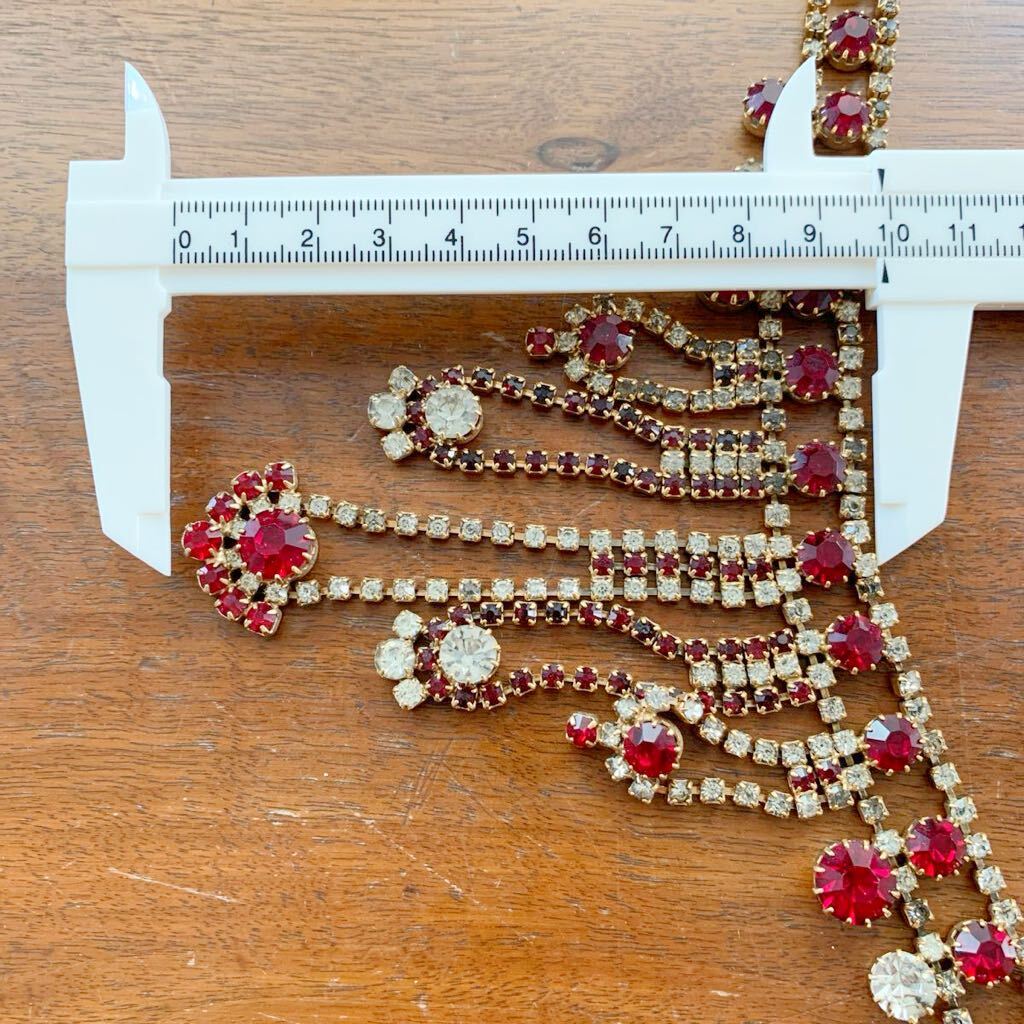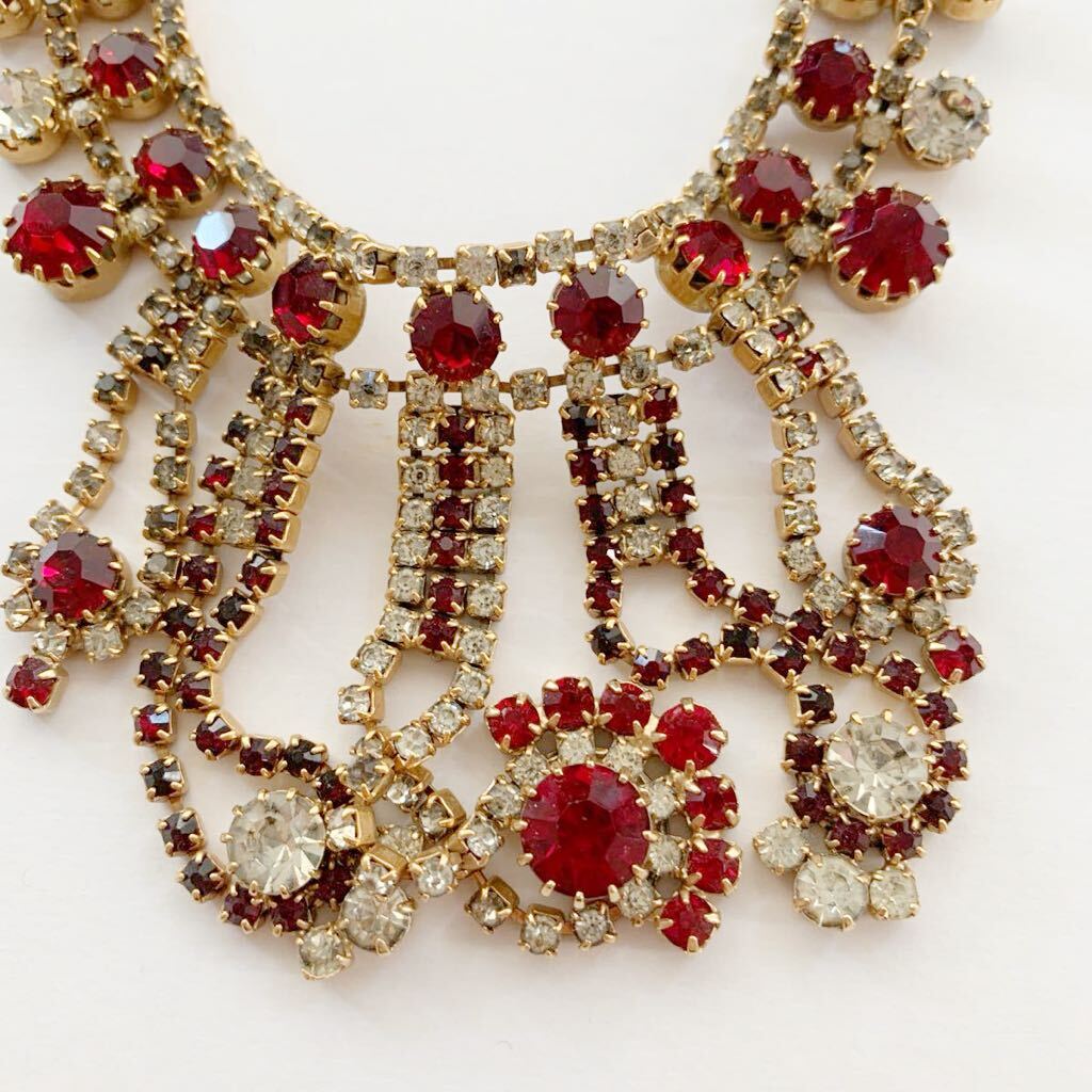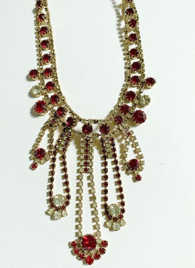 【希少】1980s チェコガラス アンティーク ネックレス コスチュームジュエリー 真紅 赤 クリア ストーン ビジュー 舞台衣装 インテリア