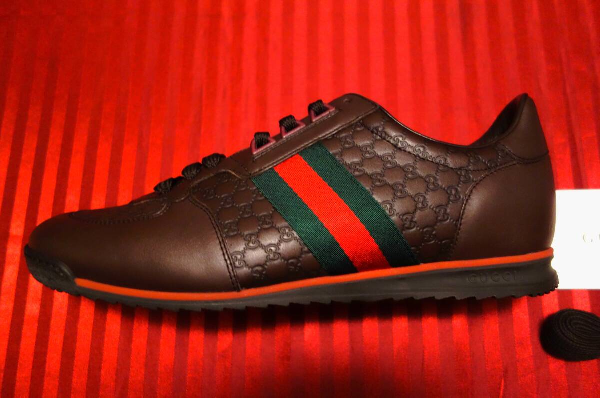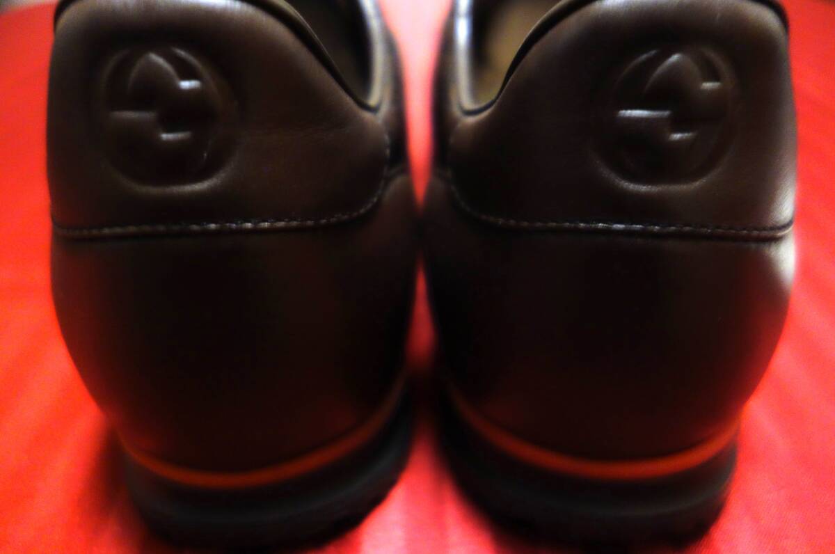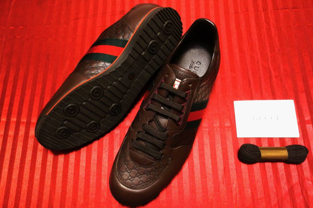 定価13万円 未使用品 グッチ(gucci) シェリーライン×GGレザースニーカー 91/2 (日本サイズ28.5cm) 濃茶