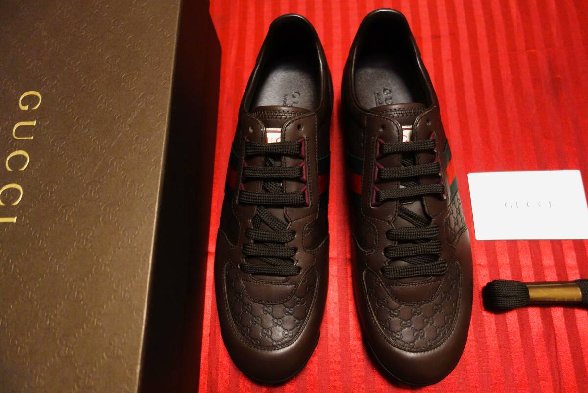 グッチ(gucci) シェリーライン×GGレザースニーカー、ダークブラウンの出品です。