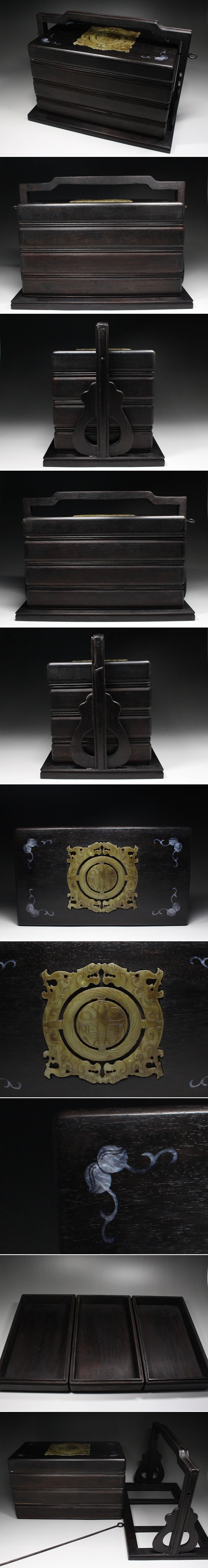 | ■中国古玩■堤梁・三段・器局・提箱・提籃・茶箱・印材箱・玉石嵌・獅子紋彫・螺鈿・唐木・煎茶道具・超細密細工・検 紫檀 黒檀・f2502U | ||||||||||||||||||||