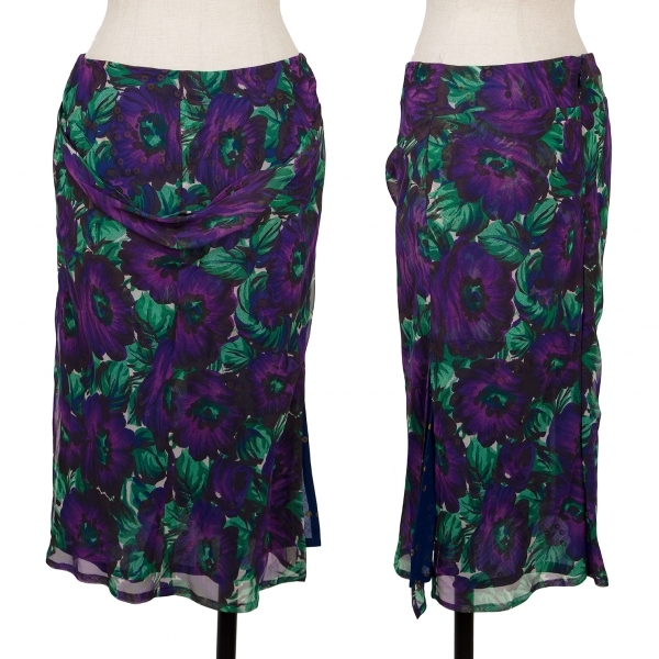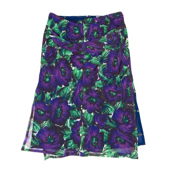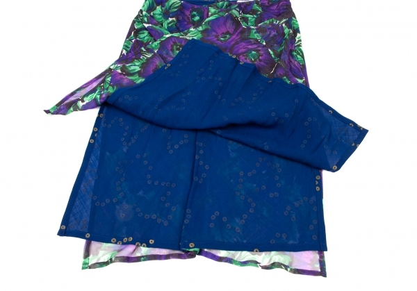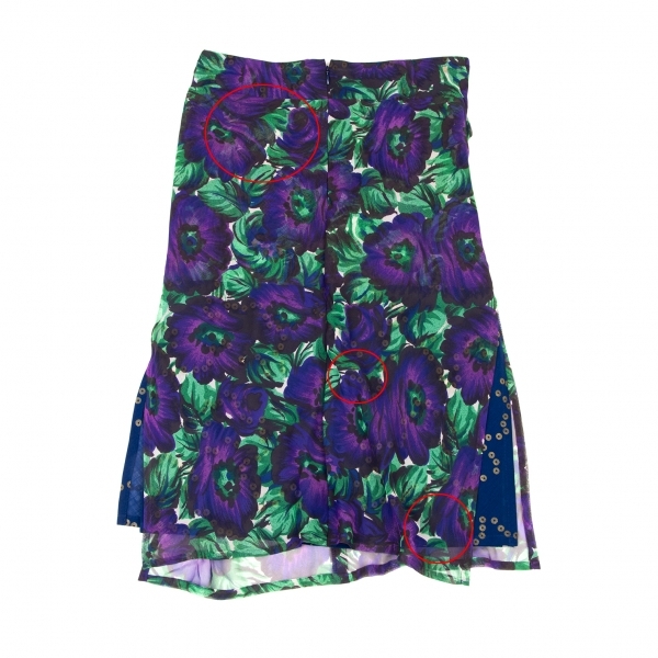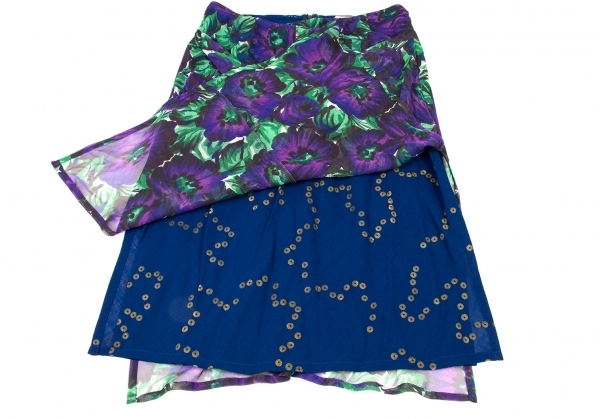 ズッカzucca フラワープリントシースルーレイヤードスカート 紫緑他M |