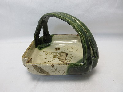 商品説明 | 茶道具 文祥作 織部 手鉢 菓子器です。 <商品の状態> 茶人宅保管品の古いお品でございますが綺麗な印象です。 未使用かと思われるほど、中古品としては綺麗な状態でございます。 お品の詳細な状態については写真をご覧頂き、ご納得頂いた上でのご入札をお願いします。 [サイズ] 縦幅:約 18.5 cm 横幅:約 18.5 cm 高さ:約15 cm タイトルの『検)』以降の単語は、商品に関連する検索用単語です。 ご入札頂く前に、必ず「ご入札頂く前の注意事項」の説明をお読み下さい。 説明しきれない多少の傷・汚れや経年に伴う変色などがあることをご理解のうえ、ご入札・ご落札お願い致します。 共箱・段ボール箱・紙箱等付随物にはに保管時における時代感や書き込み、スレ・汚れ・キズ・シミ等の有る場合がございます。 同梱発送にも対応しておりますので、お気軽にお申し出下さいませ。 <梱包に関して> 商品の紛失を防ぐ為、小さな商品の場合でも、ある程度の大きさの梱包でお届けする場合がありますのでご了承下さい。 ※梱包材は環境保護や廃棄物削減を目指し、又多様な商品形状に対応できるように配送に使用するダンボール箱はリサイクル(再利用)を使用し、緩衝材等には古新聞紙等を利用しています。 <応対可能時間について> 取引ナビ・質問への応対可能時間は「9:00~17:00」 となりますが繁忙時等は対応できない場合がございます。 お品の状態等気になる事項は「ご質問」にてご確認の上「入札・落札」をお願いします。 <ご返品について> 正当な理由によるご返品のお申し出につきましてはご対応させていただいております。 (例:商品説明・写真と、実際の商品に著しい差違がある場合等のみ対応させていただきます) | ||