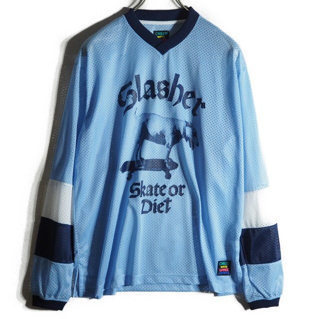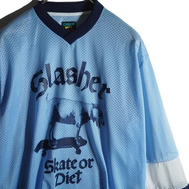 M8517f29 ■LOOSEJOINTS 阿部周平■ SHUHEI ABE CWL Mesh Shirt SAX クルーメッシュ シャツ サックスブルー L / 長袖 Tシャツ 春夏