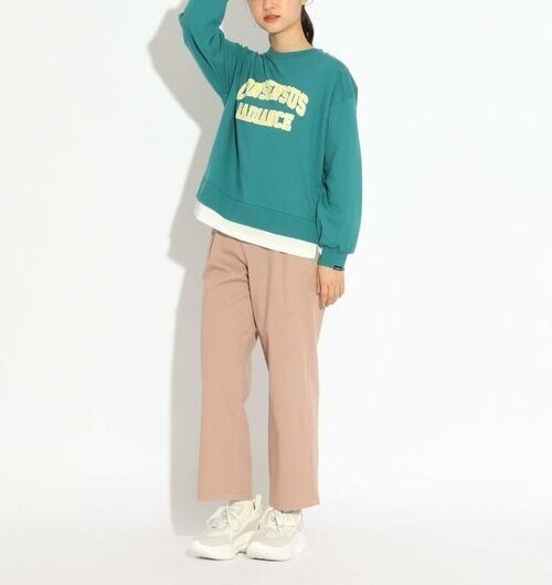 ラスト 新品 PINK-latte カレッジ風裾レイヤードトップス グリーン(022) 15(150cm) 定価2530円