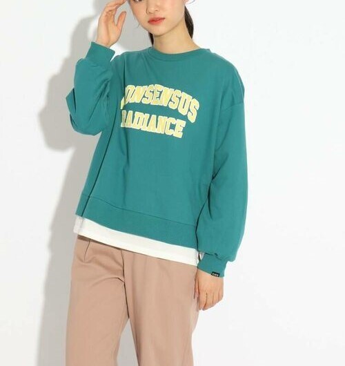新品 PINK-latte カレッジ風裾レイヤードトップス  グリーン(022) 15(150cm) 定価2530円