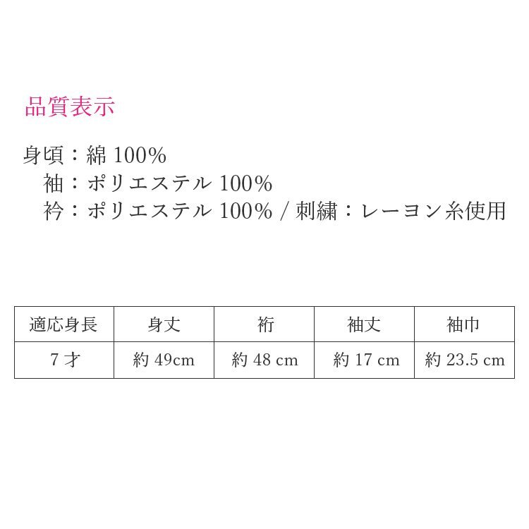 サイズ | 身丈 約49cm 裄 約48cm 袖丈 約17cm 袖巾 約23.5cm |