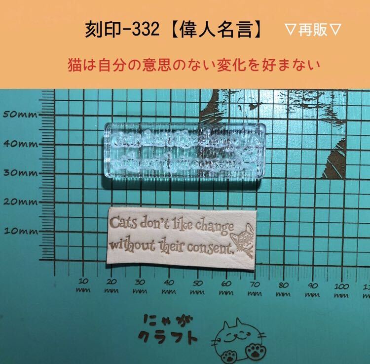 刻印-332 名言 にゃんこ 文字刻印 アクリル刻印 ハンドクラフト レザークラフト スタンプ 革タグ
