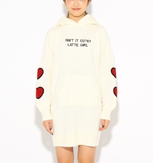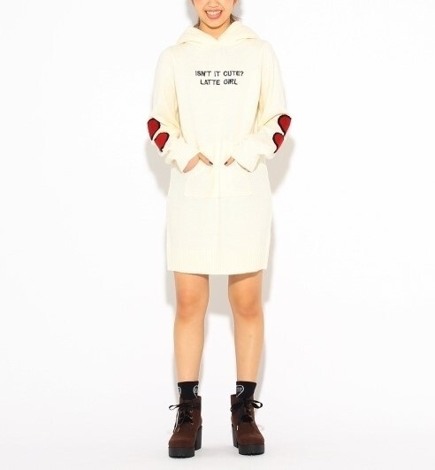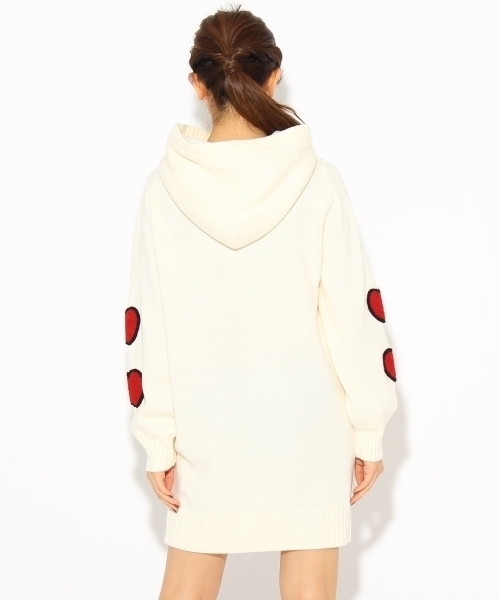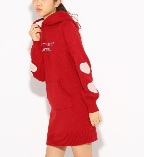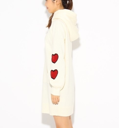 袖にあしらわれたフロッキーハートがかわいいニットワンピース。