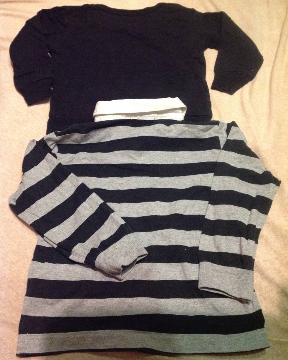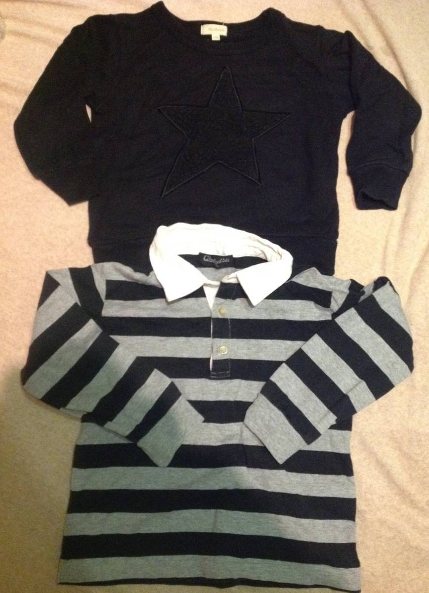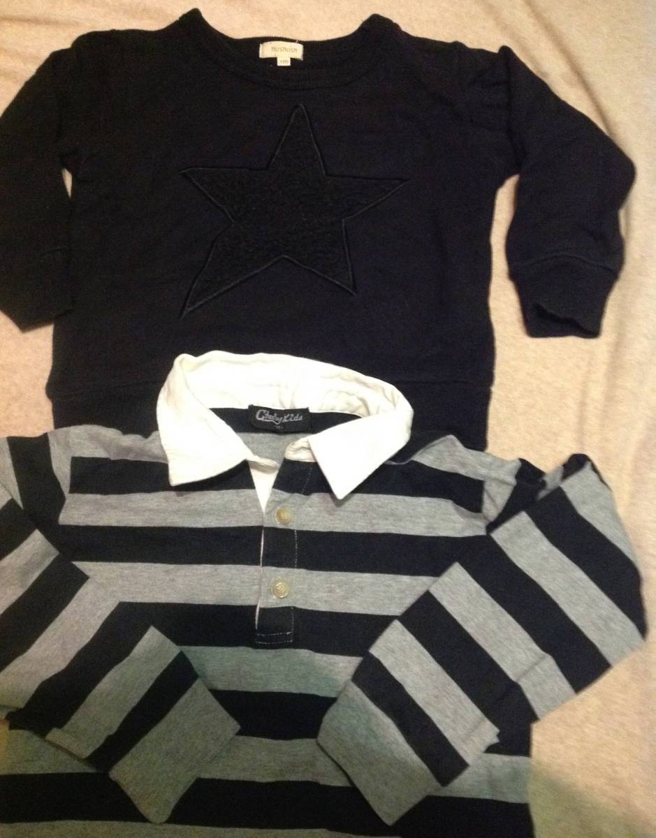 中古2点セット HusHusH ボアアップリケ裏毛トレーナー ブラック  100cm  定価2189円 & ボーダーラガーシャツ 110㎝