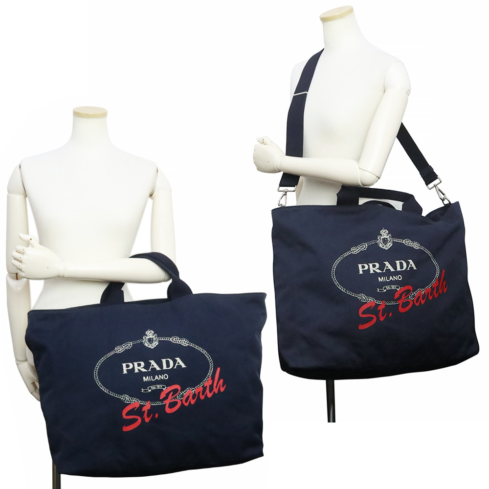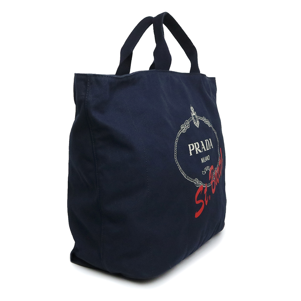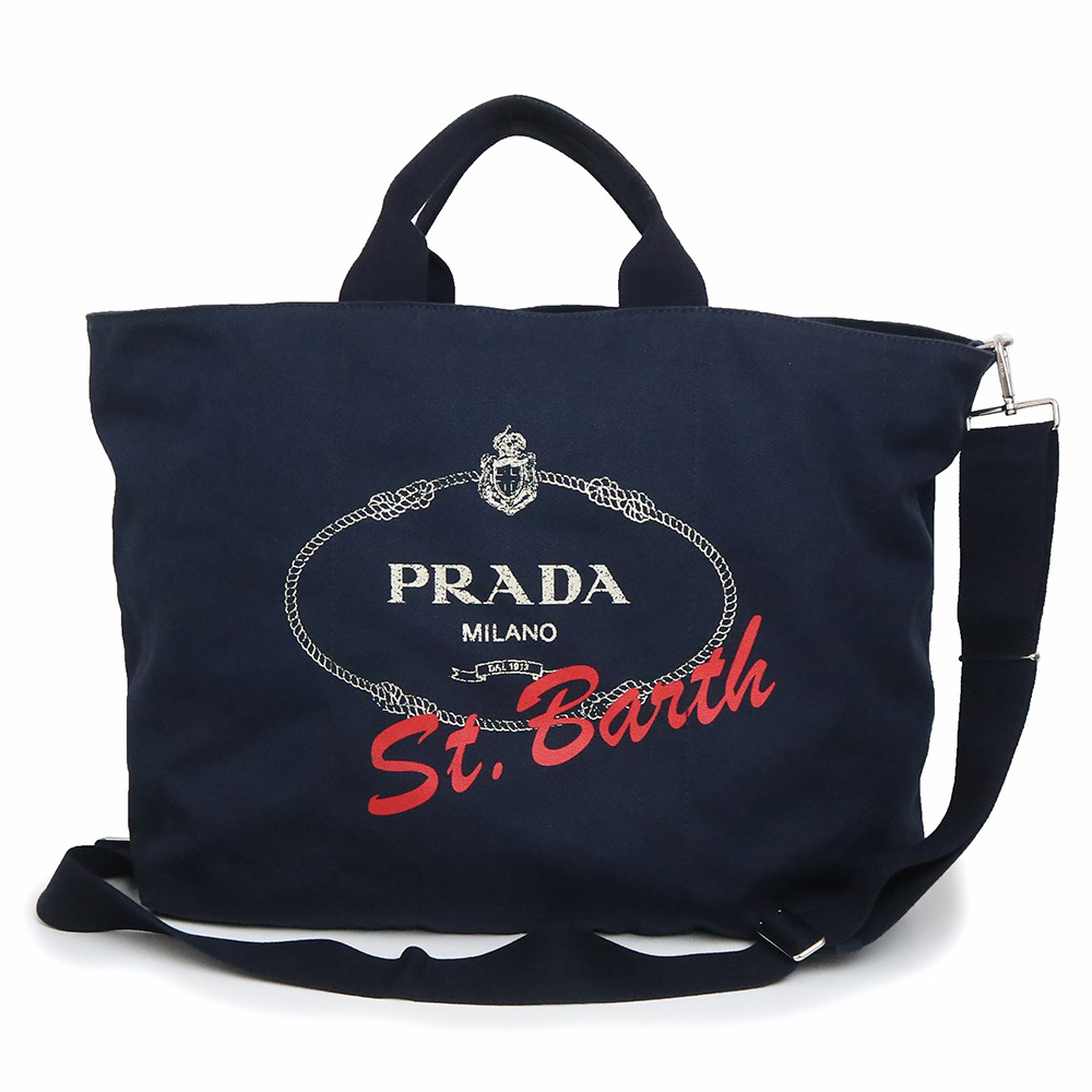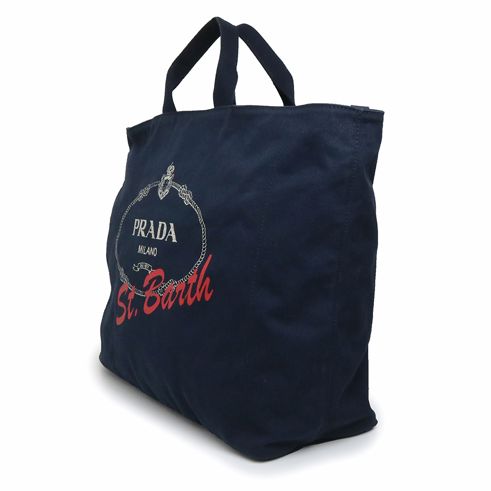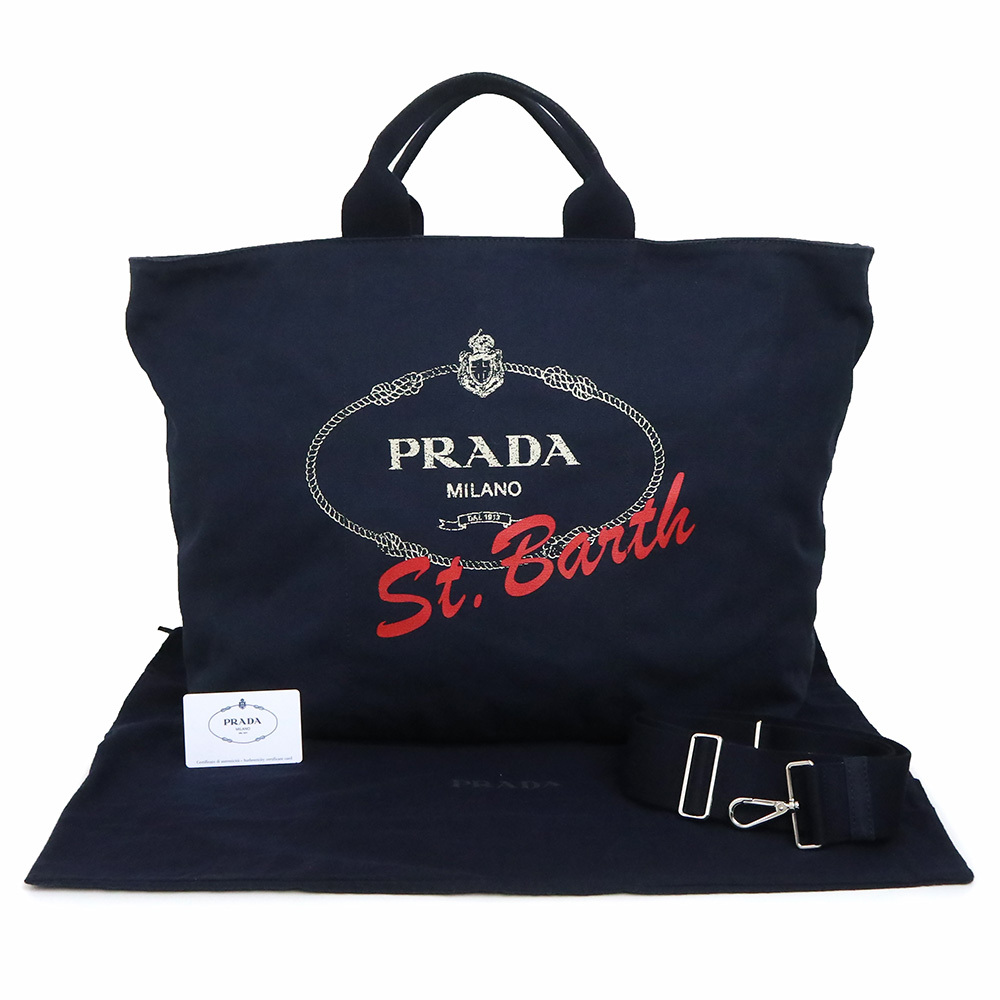 (未使用保管品)プラダ PRADA カナパ サン バルテルミー限定 2WAY トート ショルダー ハンドバッグ キャンバス ネイビー 紺 2VG022