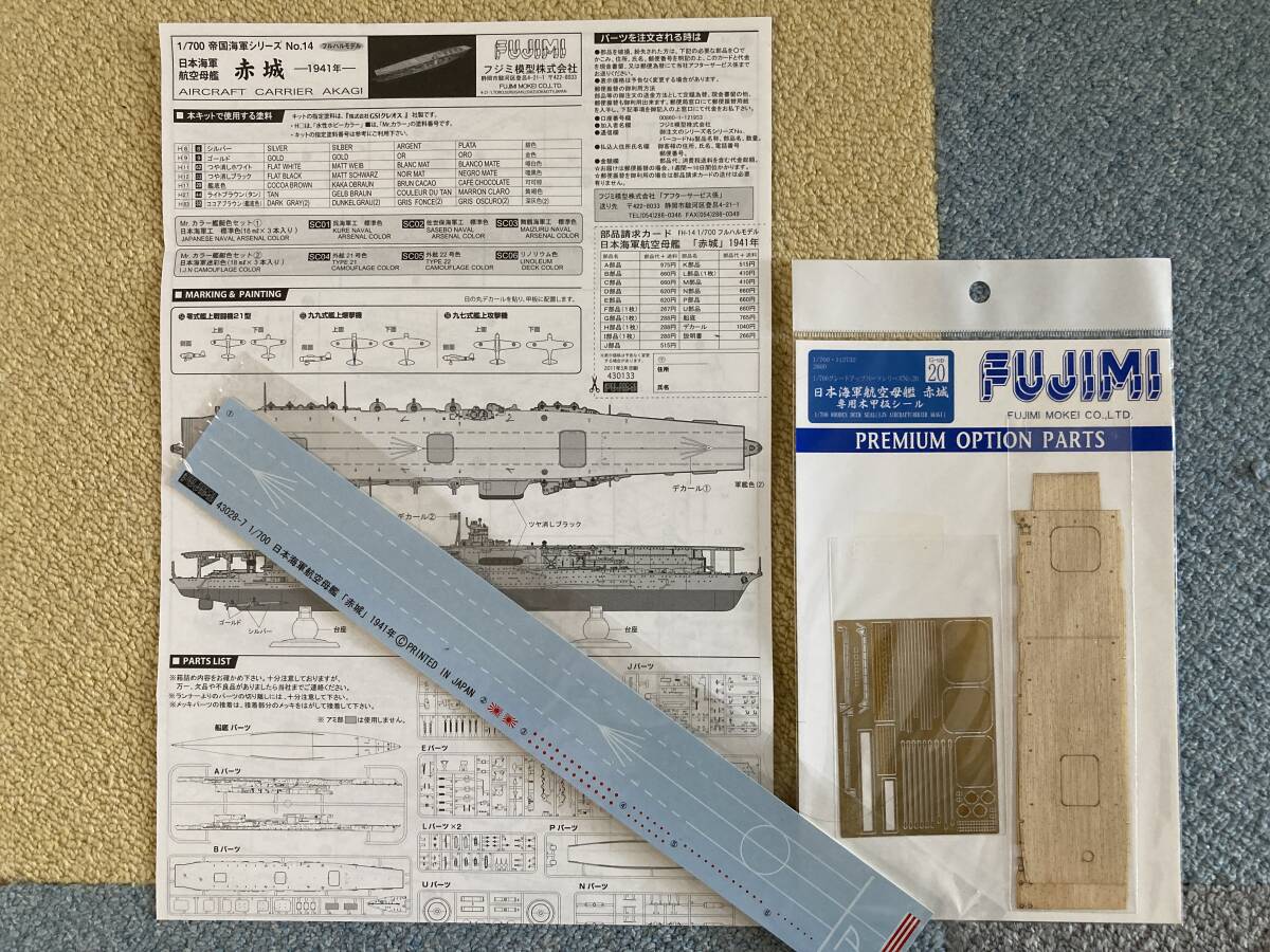 フジミ 1/700 日本帝国海軍 航空母艦 赤城 フルハルモデル+専用木甲板シール・エッチングパーツセット 未組立・未使用品
