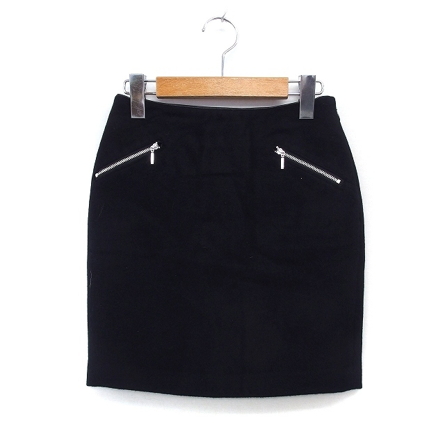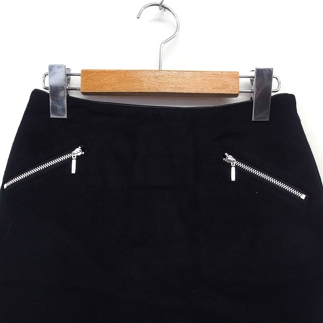 22オクトーブル 22 OCTOBRE タイトスカート ミニ ジップポケット 無地 起毛 アンゴラ 34 ブラック 黒 /FT1 レディース