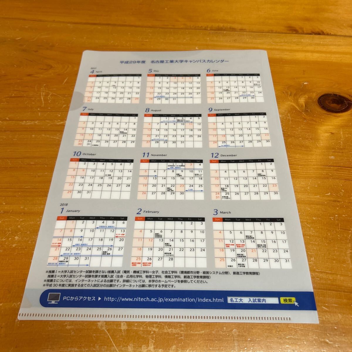 クリアファイル A4サイズ 平成29年度 名古屋工業大学キャンパスカレンダー 非売品 中古品 送料無料の出品です。(自己紹介一読し落札願います。) 納戸の整理(断捨離)で今後使用予定がない為出品しました。 衣装ケースに入れて保管してました。