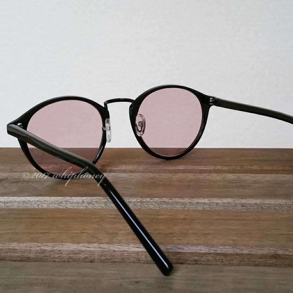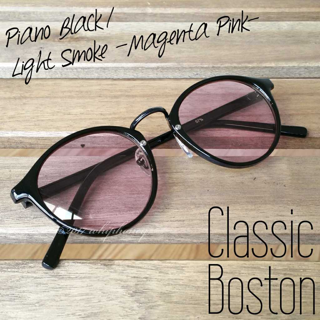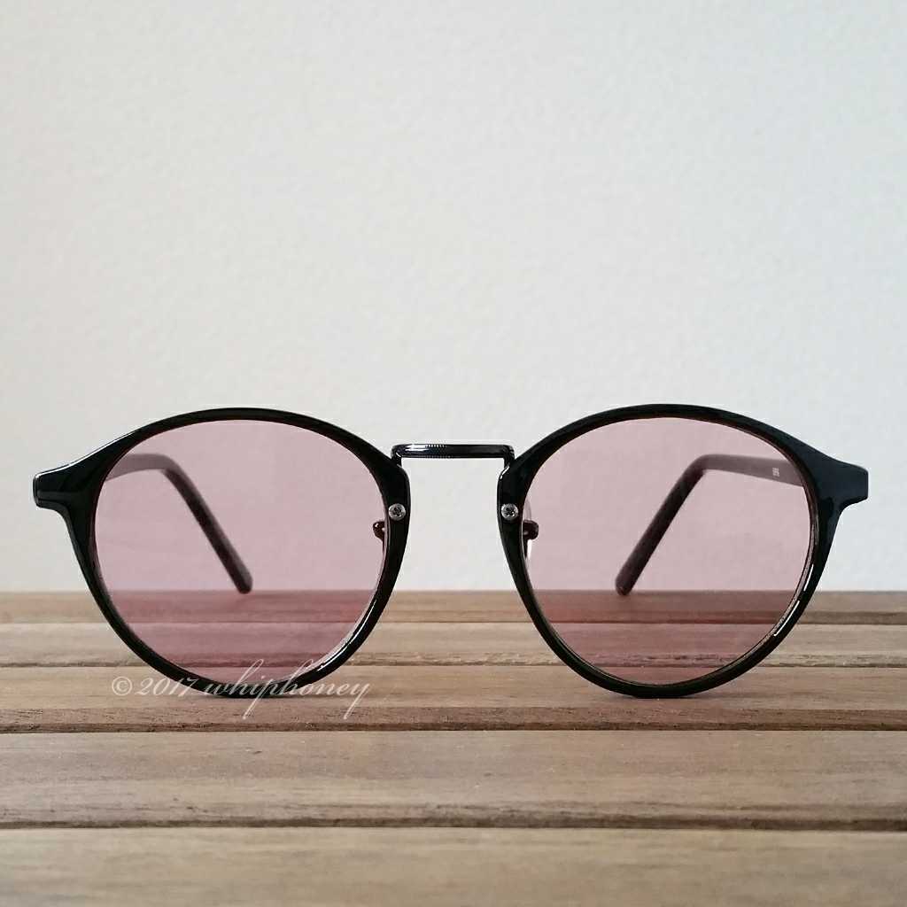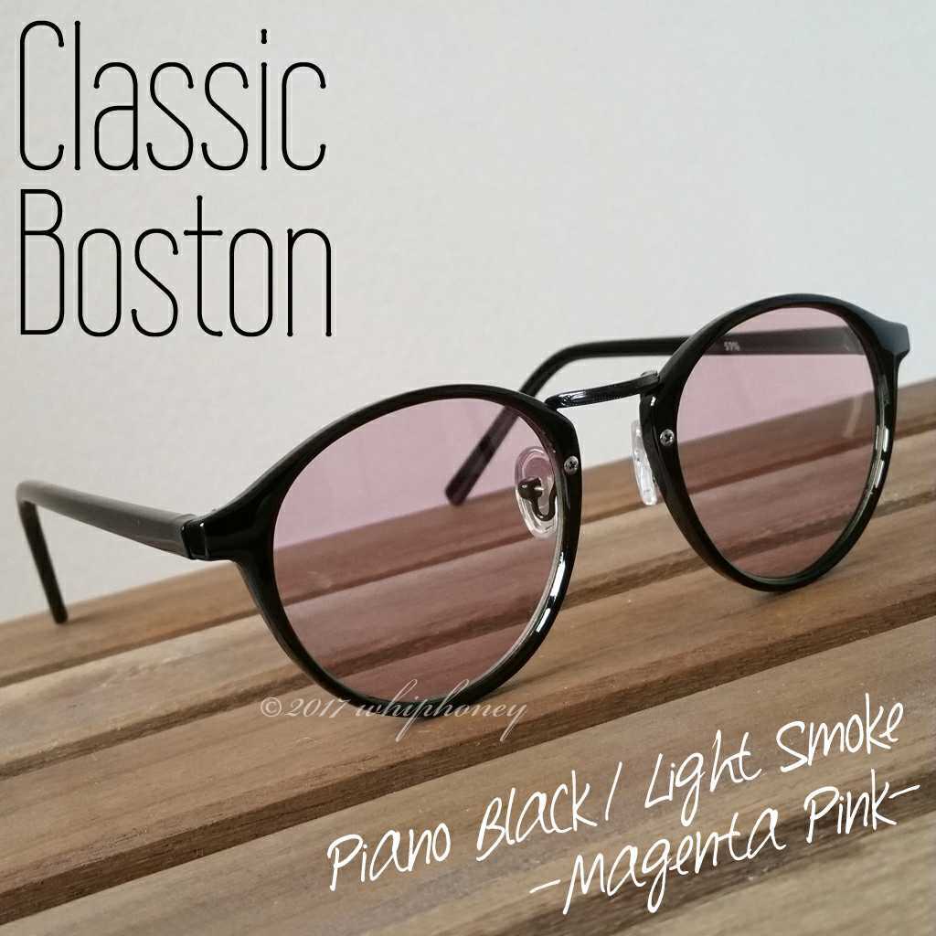 ラウンドボストンだて眼鏡ピアノブラック マゼンタピンクレンズ