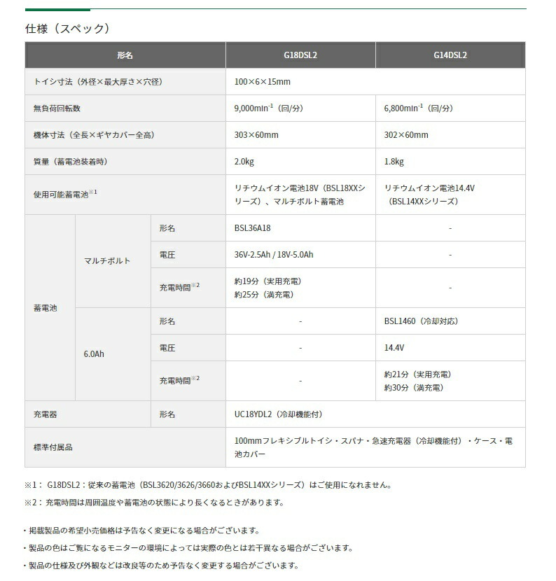 ※マキタ社従来製品 G18DSL、G14DSLとの比較。