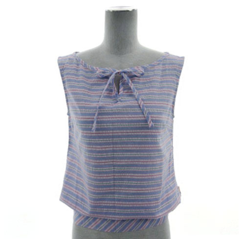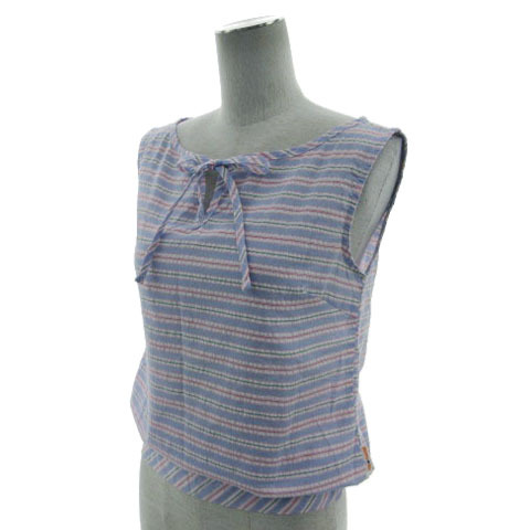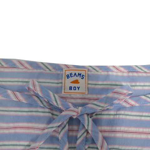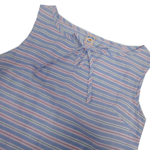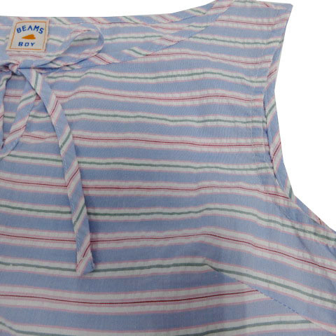 ビームスボーイ BEAMS BOY カットソー ノースリーブ リボン コットン混 マルチボーダー 青系 白 ピンク 緑 赤