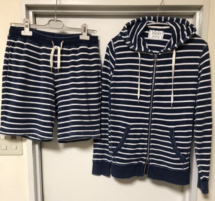 ◆【人気】nano・universe/ROYAL PALM:RPインディゴパイルボーダーパーカーM:RP インディゴパイルボーダーショーツS (セットアップ)