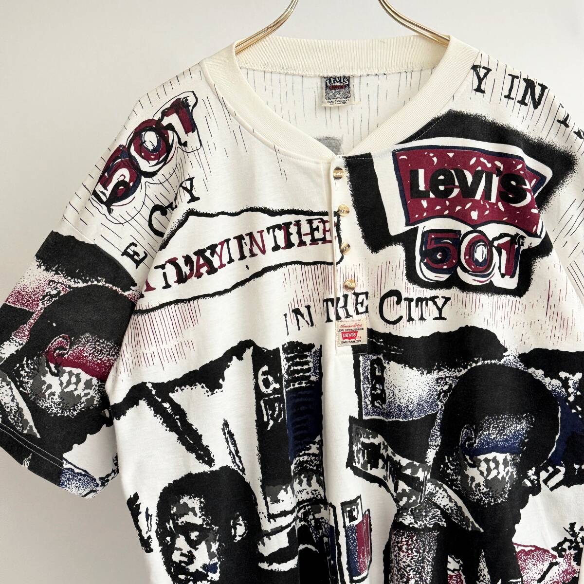 希少《 Mint Condition / Levi's / USA 》80s 90s 極上品【 リーバイス 501 総柄 ヘンリーネック Tシャツ アメリカ製 ビンテージ 】