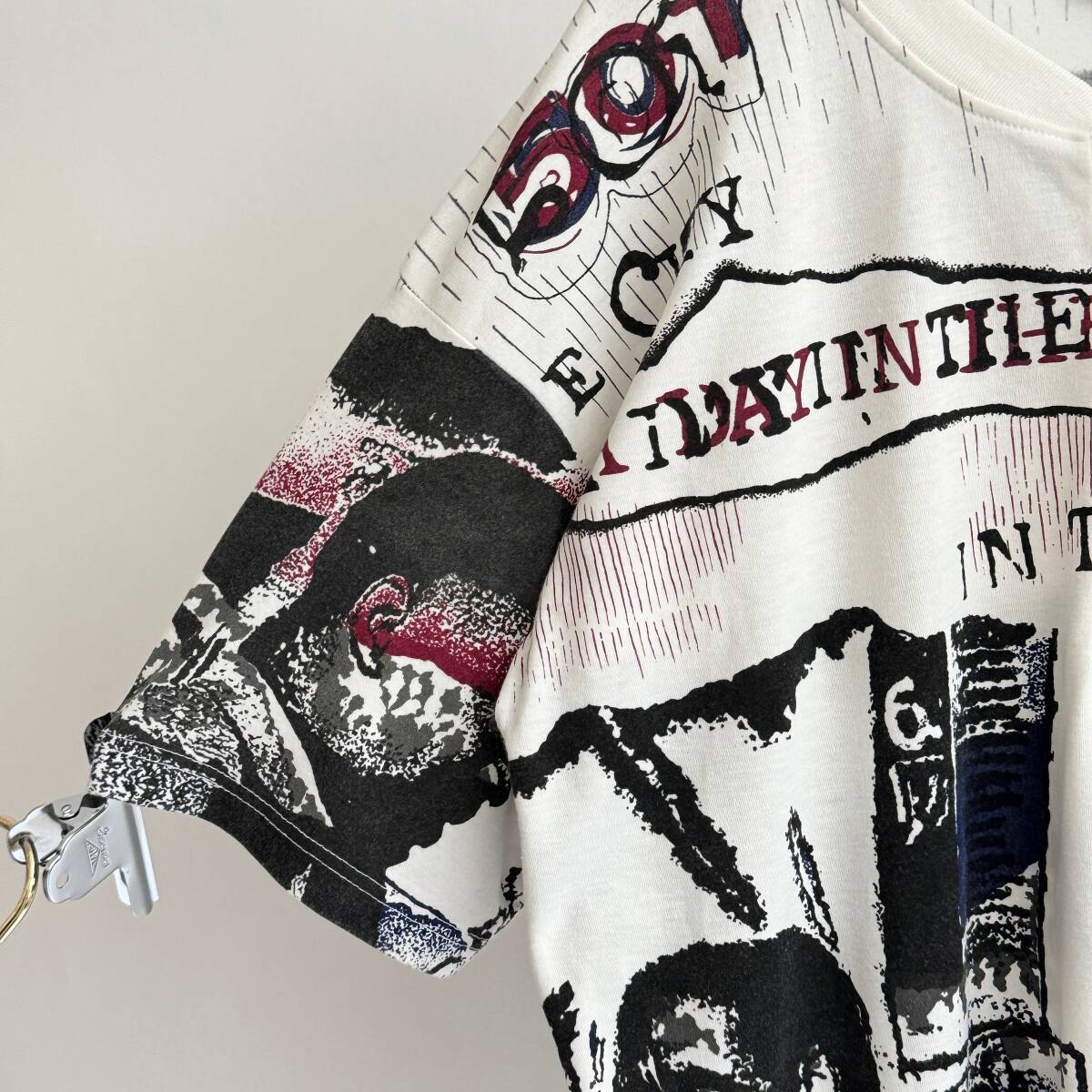 1990年代アメリカ製 " ヘンリーネック 総柄 Tシャツ "