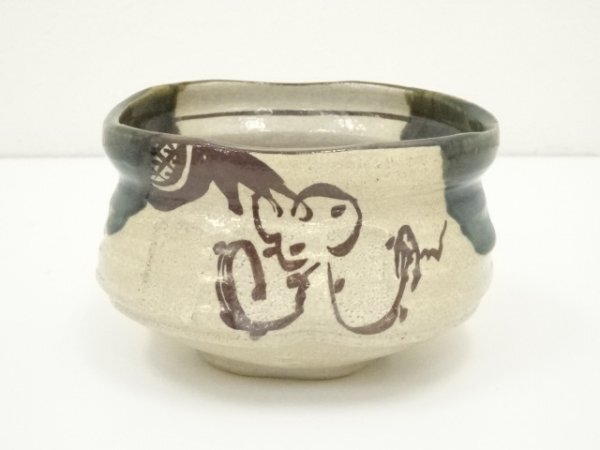 ys7008220; 野田東山造 織部茶碗(共箱)【道】
