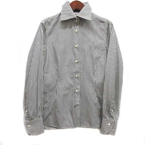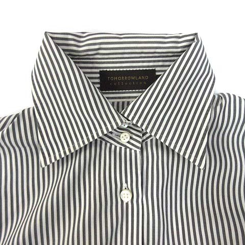 トゥモローランドコレクション TOMORROWLAND collection シャツ ブラウス コットン ストライプ 長袖 グレー 36 レディース