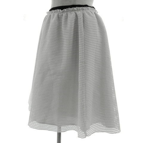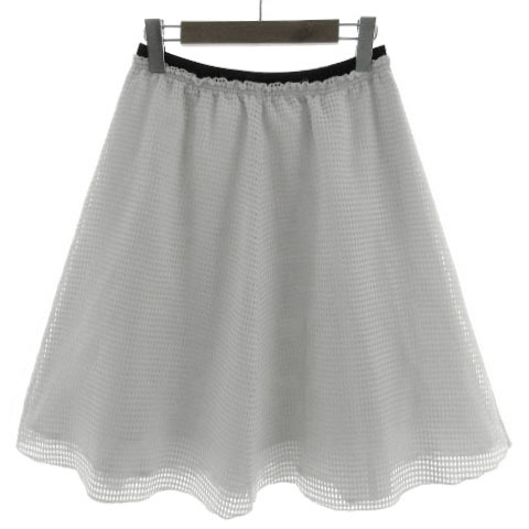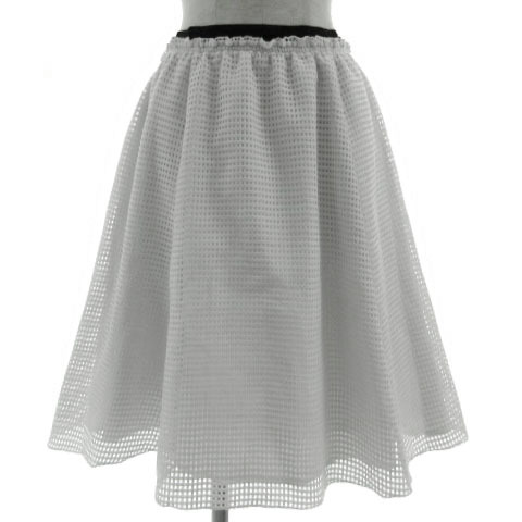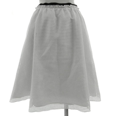 ラボラトリーワーク laboratory work スカート フレア 格子柄 メッシュ ミディ丈 ウエストゴム ホワイト 白 ブラック 黒 M レディース