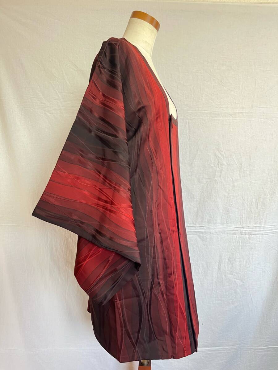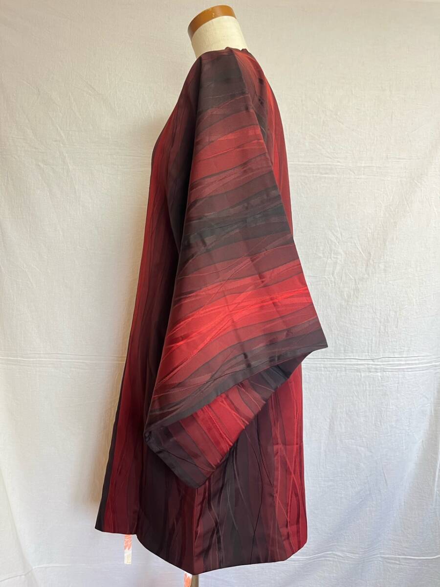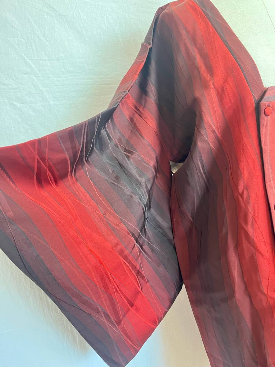 0014★道行コート*赤*黒*柄*模様*和装コート*羽織*道中着*着物*和服*和装*レトロ*アンティーク*お得*レディース★