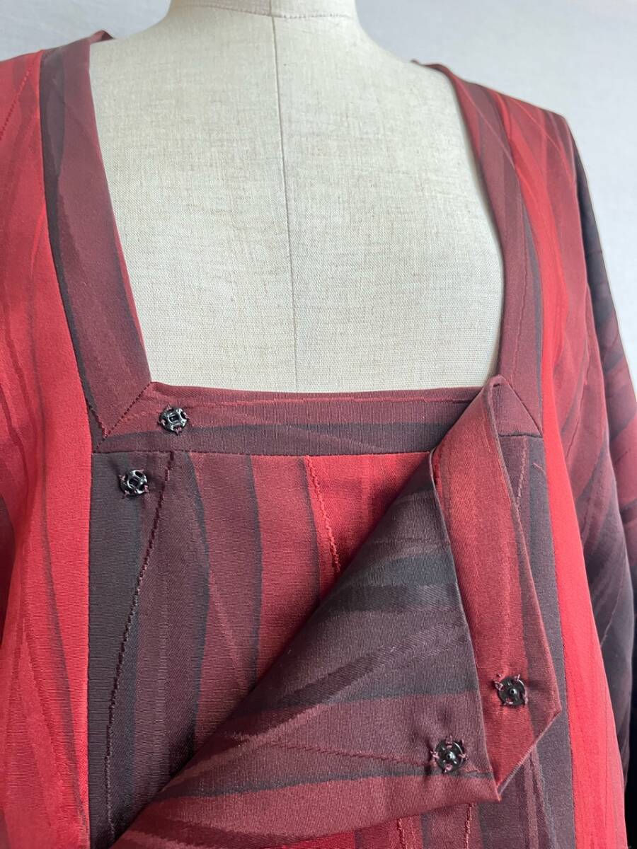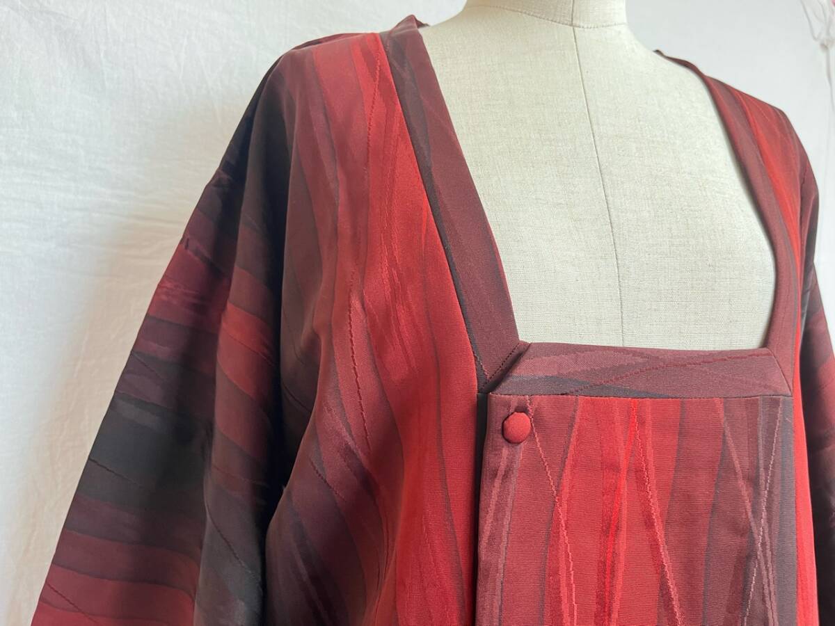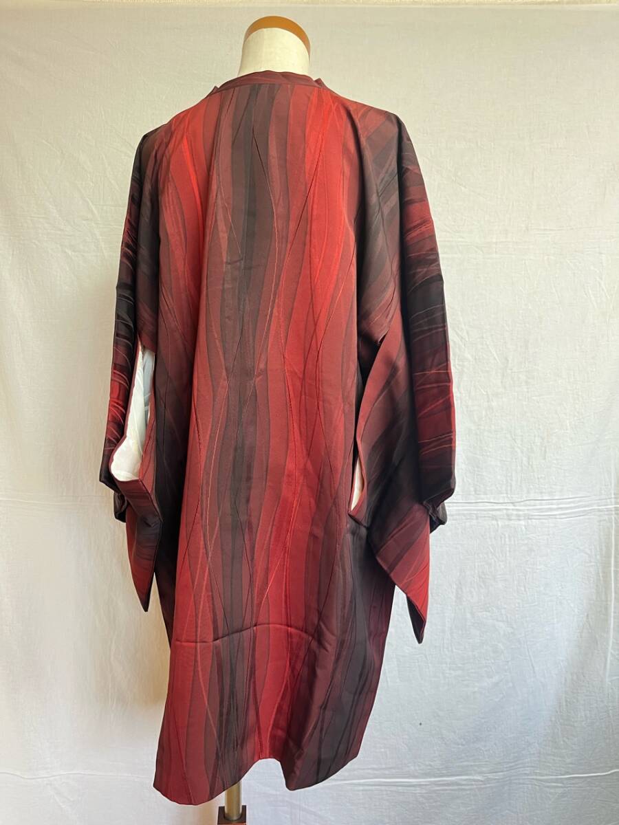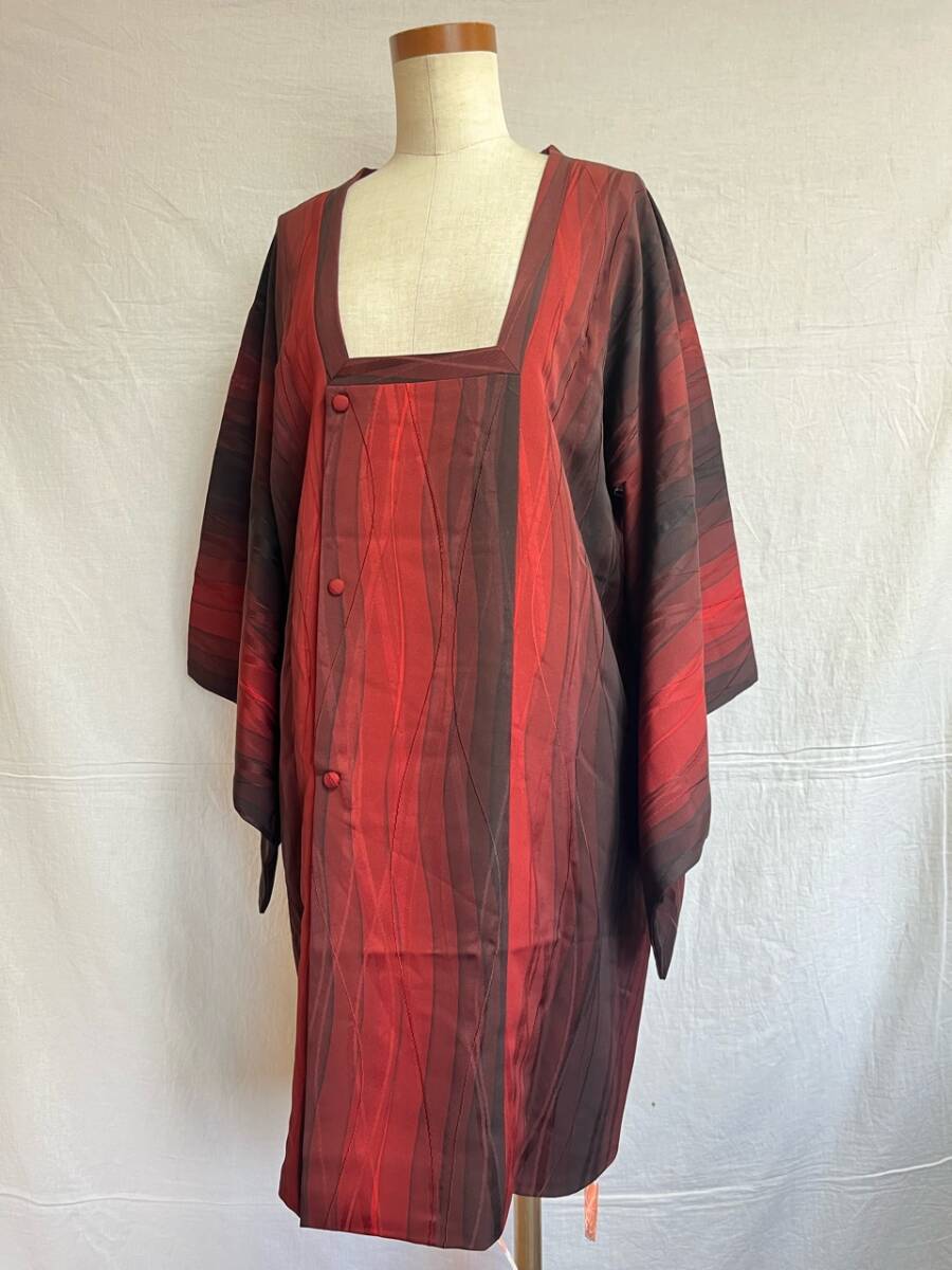 0014★道行コート*赤*黒*柄*模様*和装コート*羽織*道中着*着物*和服*和装*レトロ*アンティーク*お得*レディース★