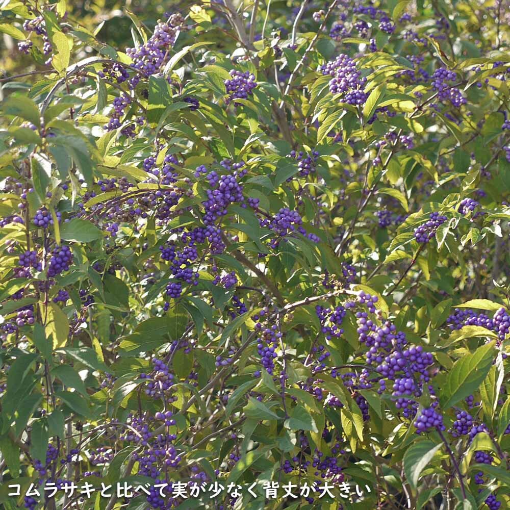 ムラサキシキブは山林などに多く自生しています。大きくなりやすい品種でムラサキ色の実が特徴です。自然風の雰囲気があります。