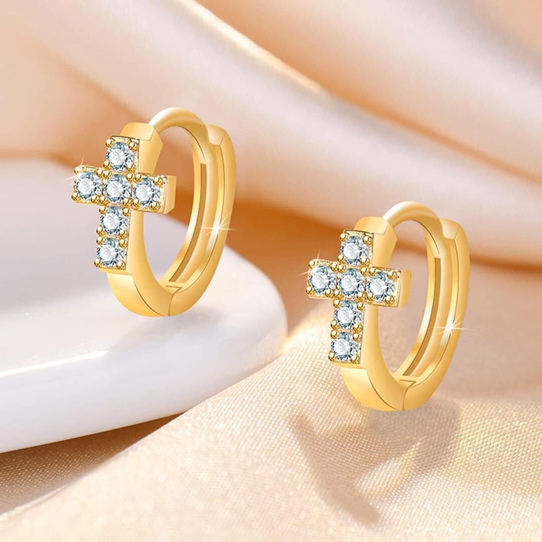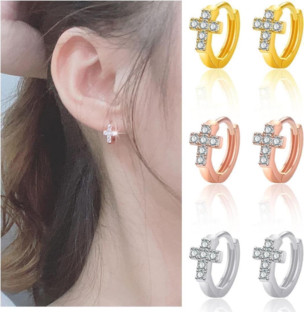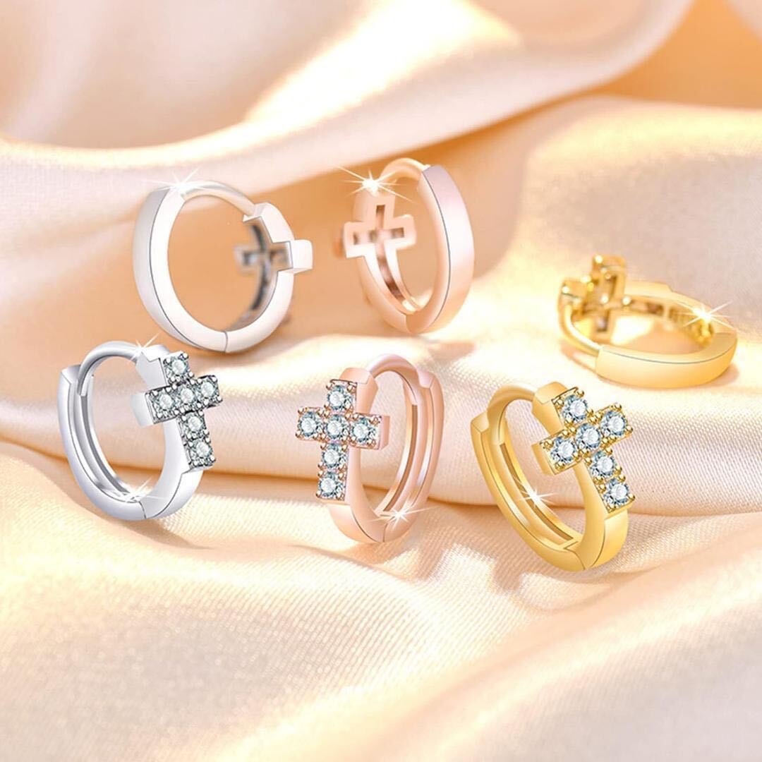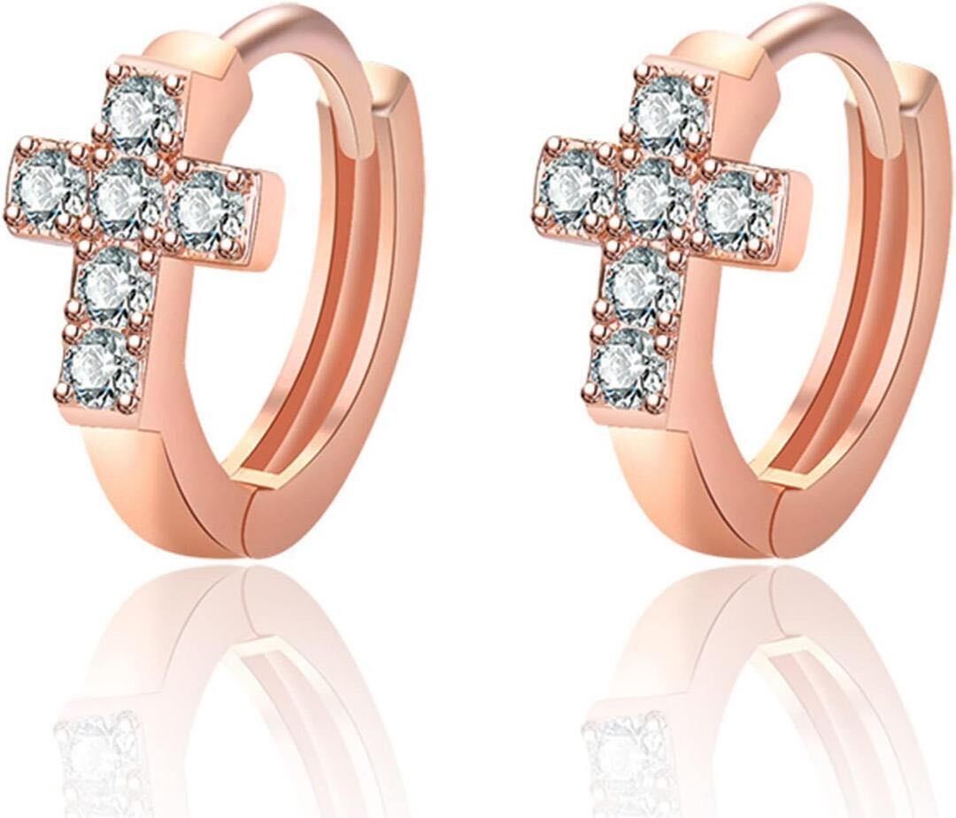 【ケース付き】クロスジルコニアピアス ローズゴールド オケージョン 卒業入学
