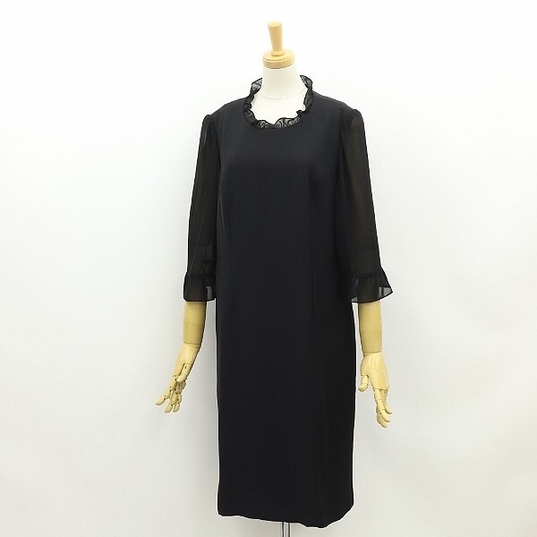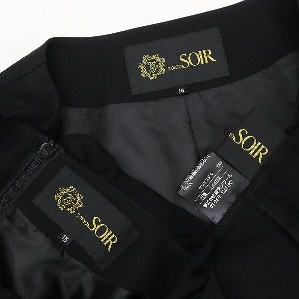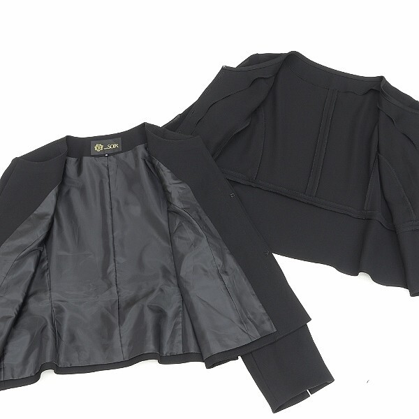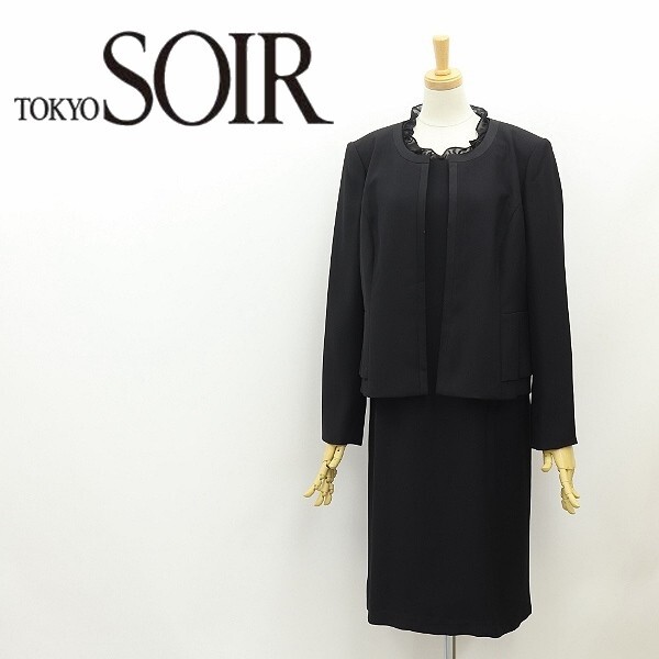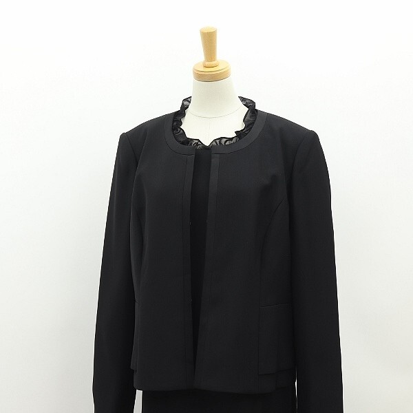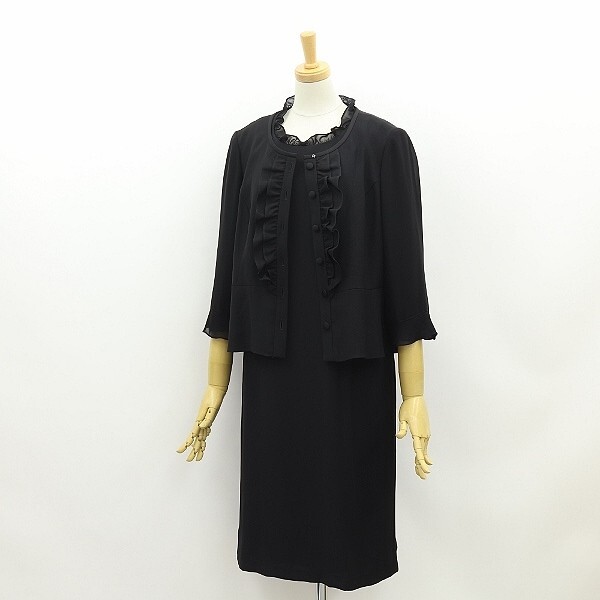 ◆TOKYO SOIR 東京ソワール ノーカラー 2ジャケット&フリル ワンピース アンサンブル セットアップ 黒 ブラック 15 大きいサイズ | |