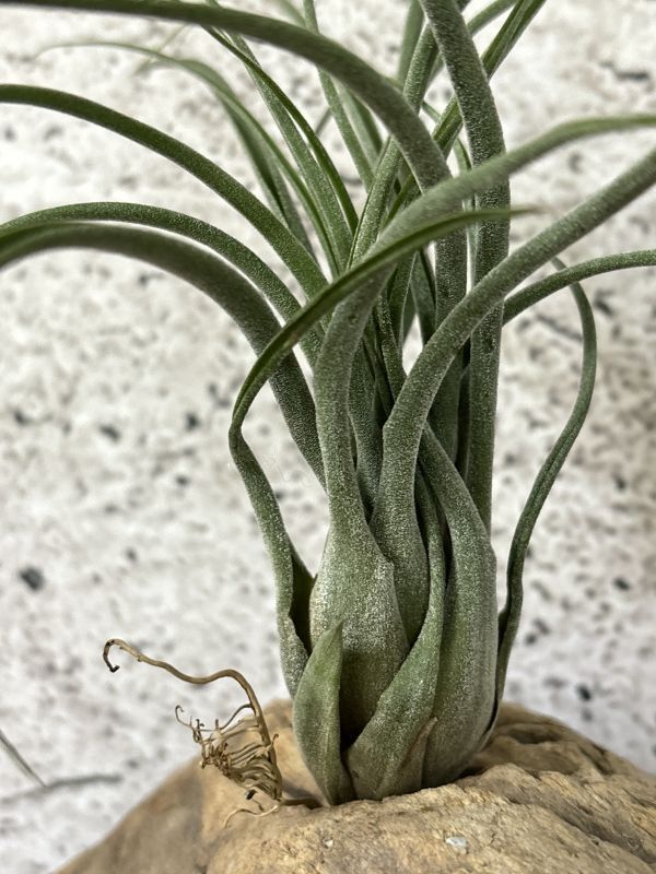 チランジアは前述したとおり葉の表面から水を吸収します。タンクタイプを除き根にはほとんど水を吸収する機能はなく樹木や岩などに着生する役割のほうが大きくなります。