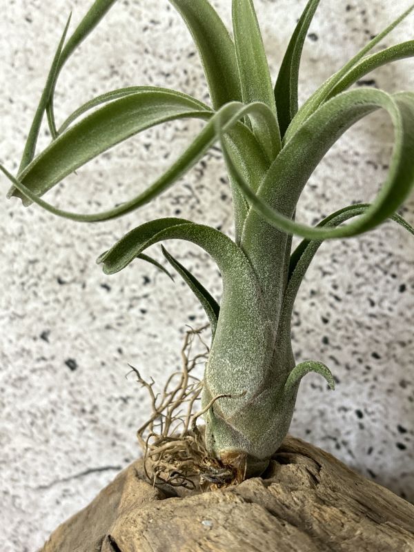チランジアは前述したとおり葉の表面から水を吸収します。タンクタイプを除き根にはほとんど水を吸収する機能はなく樹木や岩などに着生する役割のほうが大きくなります。