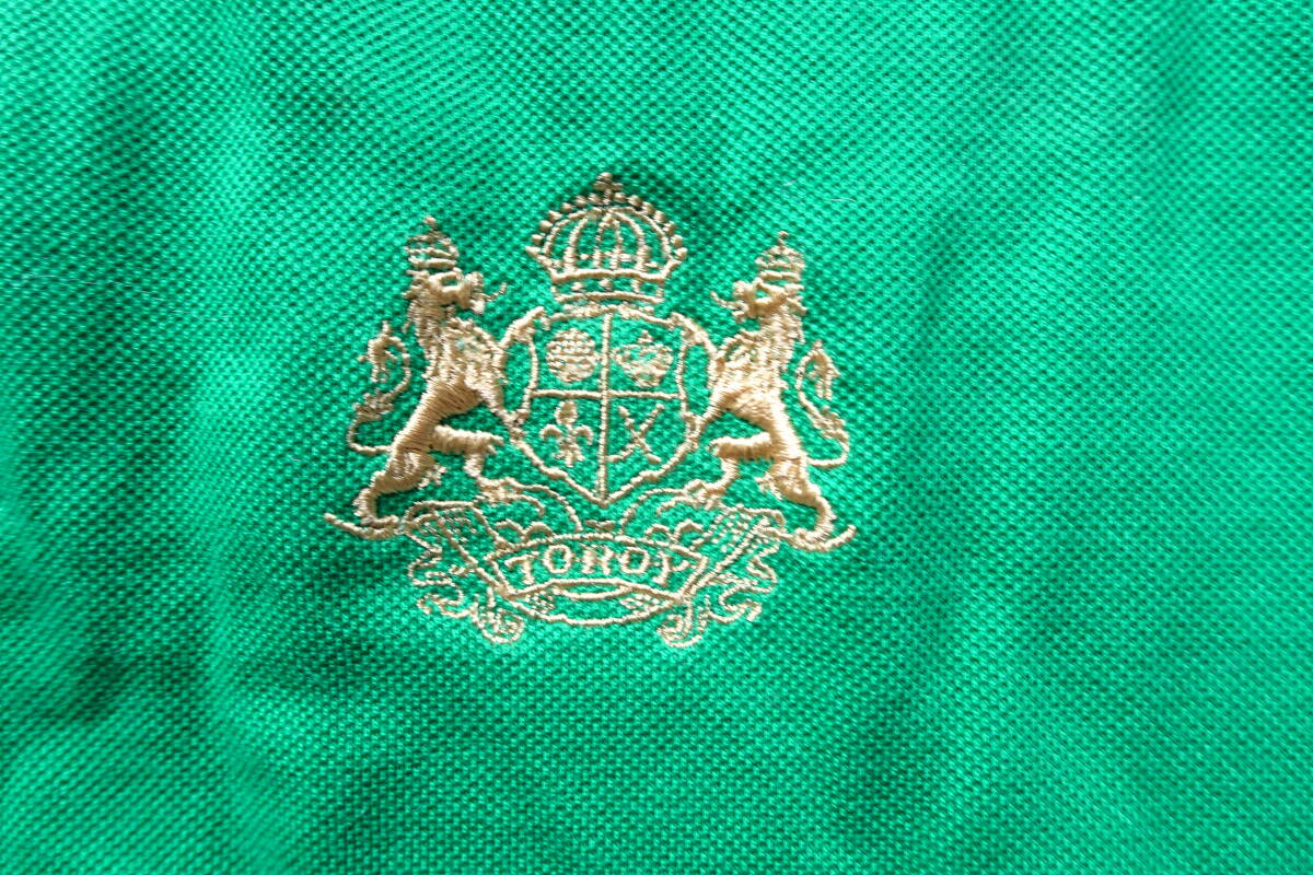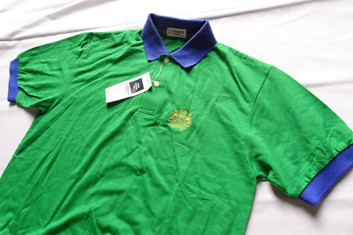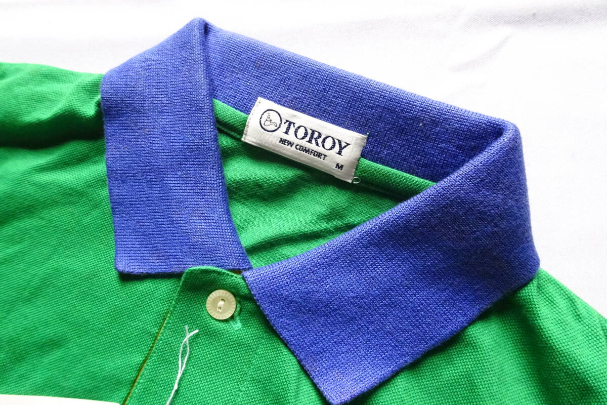 TOROY/トロイ/半袖ポロシャツ/鹿の子素材/襟・袖口青リブ素材/左胸ロゴししゅう/カジュアル/緑/グリーン/Mサイズ/タグ付(8/20R)