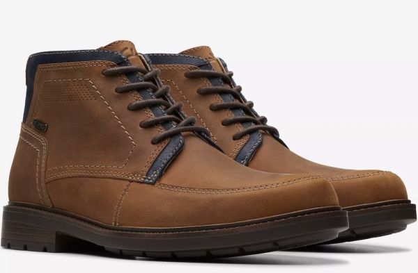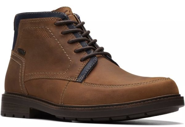 送料無料 Clarks 28.5cm チャッカ ブーツ 防水 ウォータープルーフ タン ブラウンレザー スリッポン ビジネス ローファー JJJ346