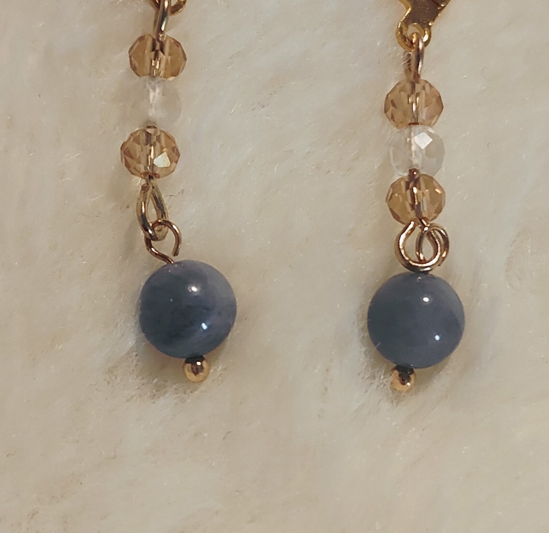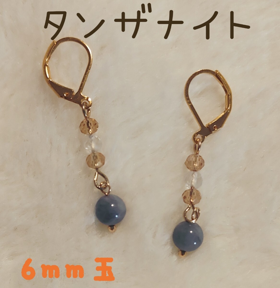 6mm玉のタンザナイト、4mm玉の水晶にガラスビーズを合わせたパワーストーンピアスorイヤリングです(=^・^=)