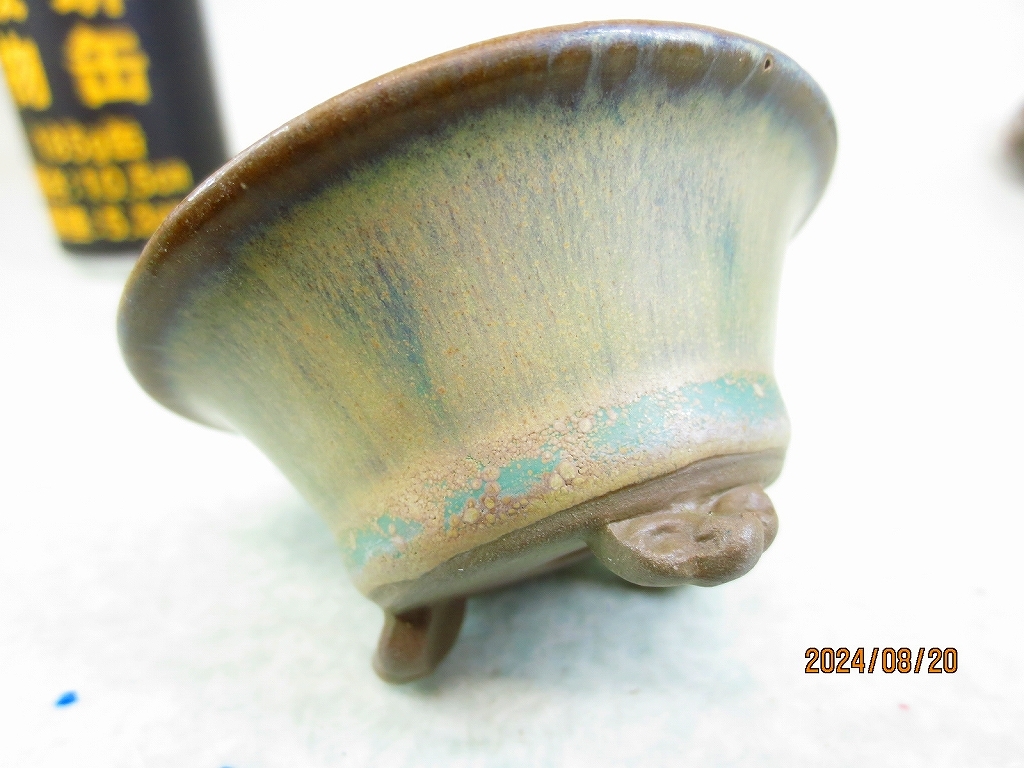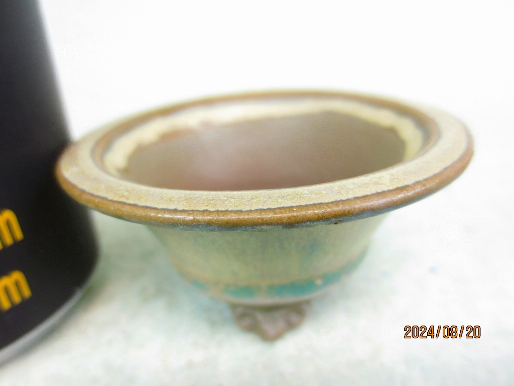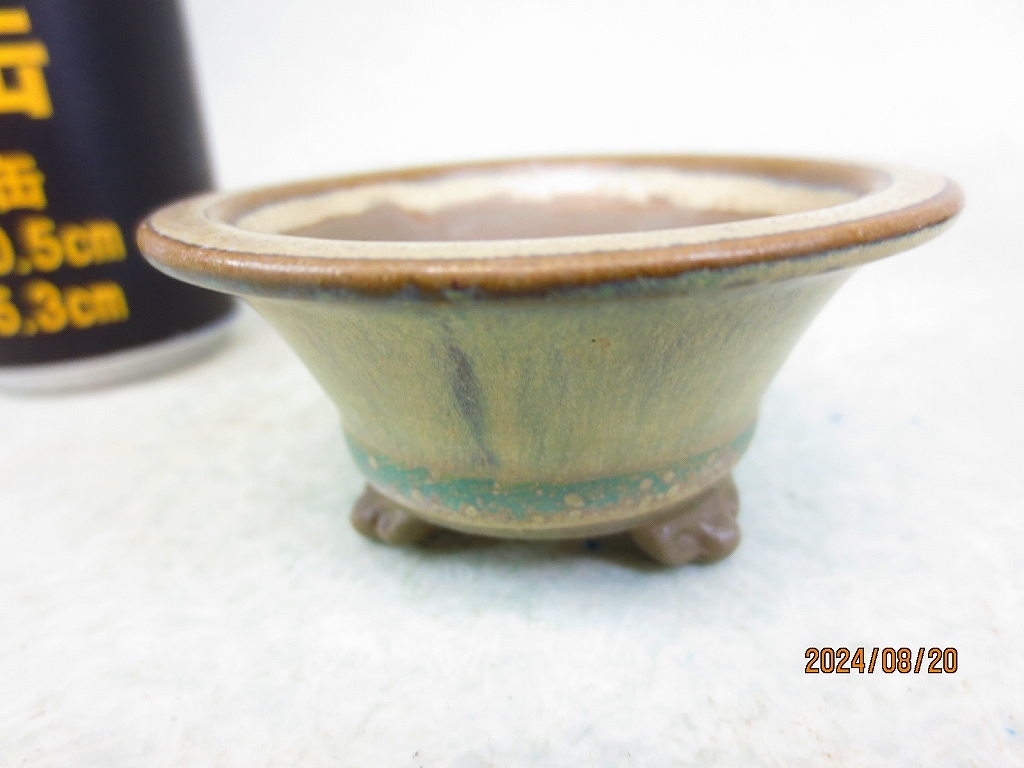 [緑の市場] 小品盆栽鉢 銘無し ヒワ釉丸鉢 7.0㎝ (L164)定形外郵便送料無料/ゆうパック発送有料*選択可※無料発送はポスト投函 定形外郵便発送選択は送料無料でポスト投函ですから配送日時指定はできません。補償なしです。(寸法や梱包資材、業務の都合で定形外郵便以外の発送方法を使用する場合がございます)ゆうパック選択は送料有料で配送指定でき補償あります。複数点追加できます。*盆栽と同梱包ご希望の際は送料不要ですが別途取引メッセージでお知らせください。 ヤフオクの取引においてメッセージは特に必要ありません。挨拶などを省略できる取引システムですし取引ナビの通知で進行状況が判るので都度の連絡(送金や受け取りのメッセージ)は不要です。特別な連絡事項があればお知らせください。双方合理的に進めましょう。また、お急ぎの方は入札をご遠慮ください。業務時間内での対応になります(土日祝休業)。 寸法は一緒に撮影しているスケールまたは比較物をご参照ください。 飲料缶は高さ約10㎝、直径約5㎝です。 500mlペットボトルは高さ約21㎝です。 *まとめて取引を手続きされた際は落札後に取引メッセージで発送方法をお知らせください。 僅かなカスレ傷がある前提でお求めください。 画像(撮影時)では小細部まで表現できないので完璧品をお求めの方は入札ご遠慮ください。 |