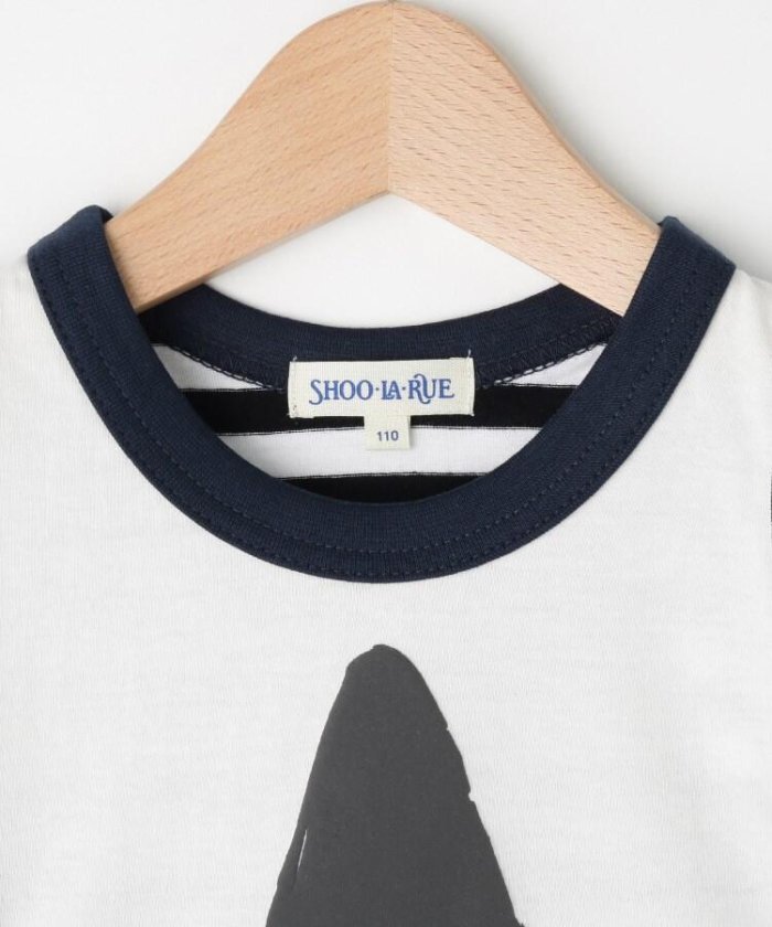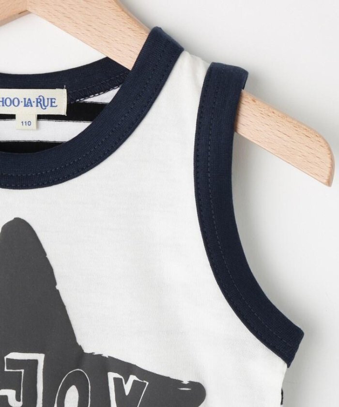 フロントにあしらったスタープリントが存在感大。バックはボーダー柄に切り替えて、おしゃれに仕上げた1枚です。