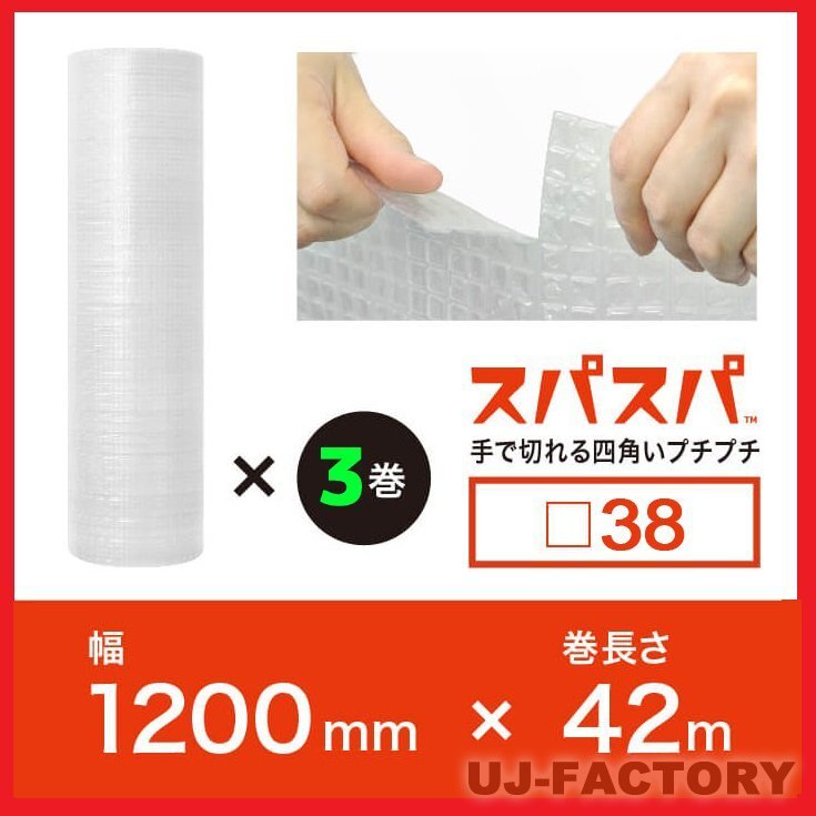 | ★ 川上産業・スパスパ ★ □38/1200mm x 42m(3本セット!) ★ 手で切れる四角いプチプチ ★ | ||||||||||||||||||||||||||||