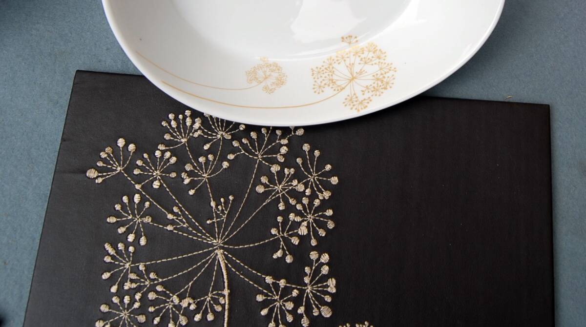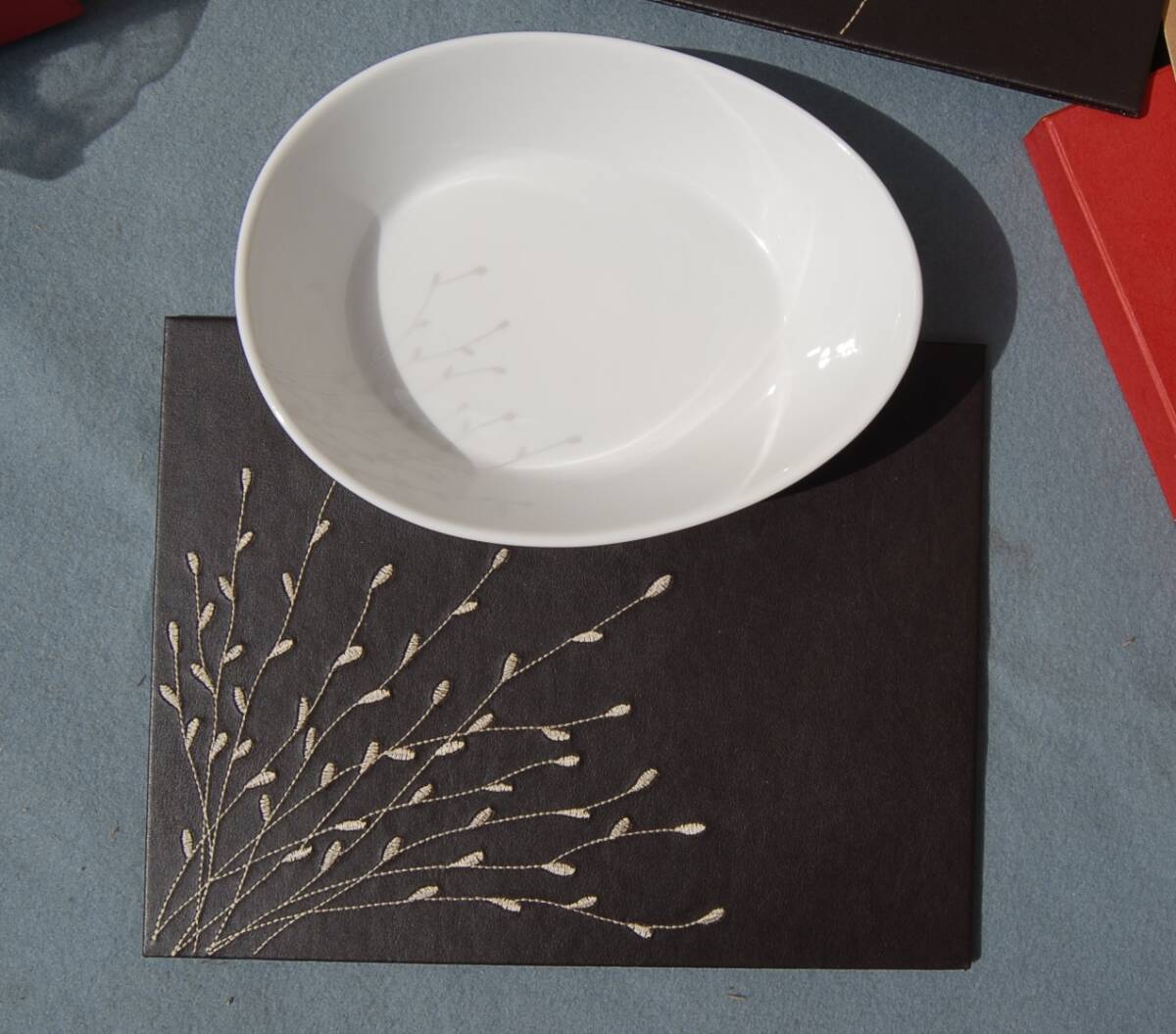 マット 21.5×28cm 厚さ約4mm 刺繍がしてある合成皮革のような感じです。