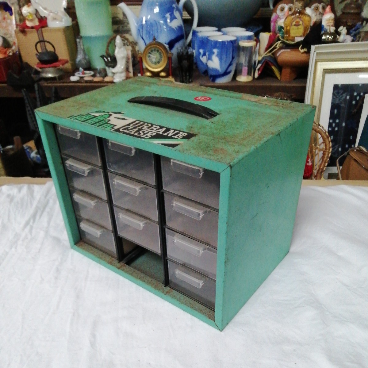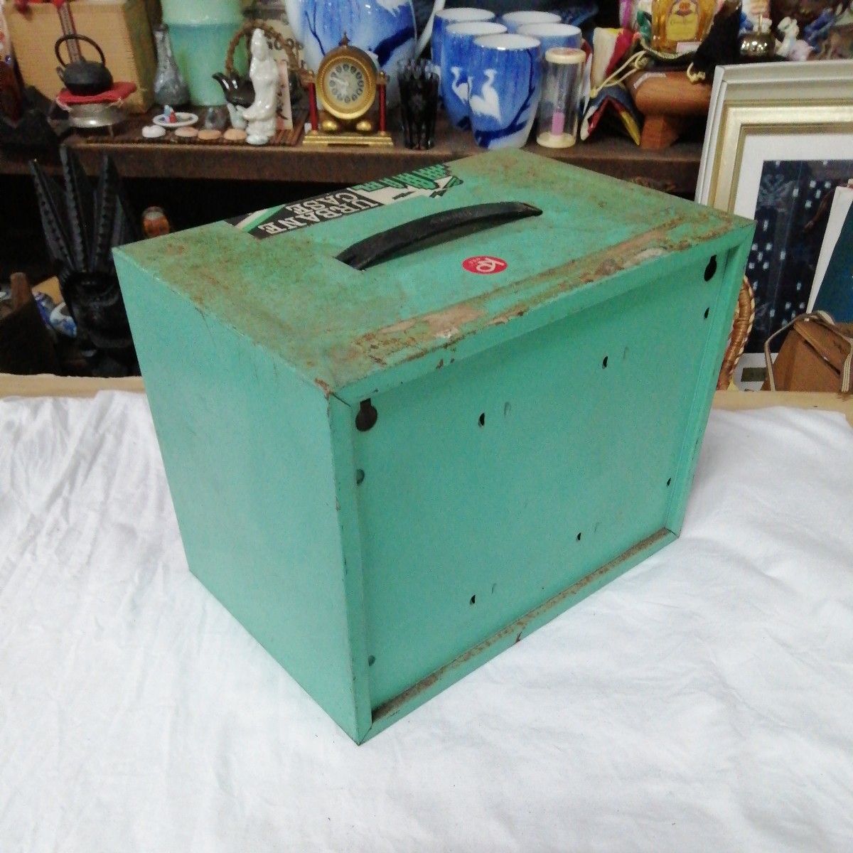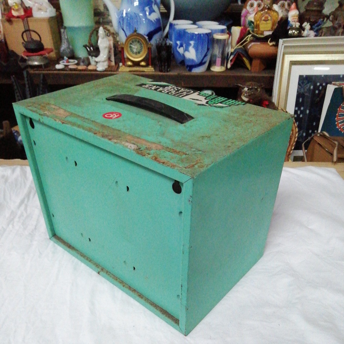 アンティーク ボックス スチール製 小物入 ガレージ Urbane CASE グリーン ヴィンテージ (約高19.7×17.1×25.5cm) シャビーな