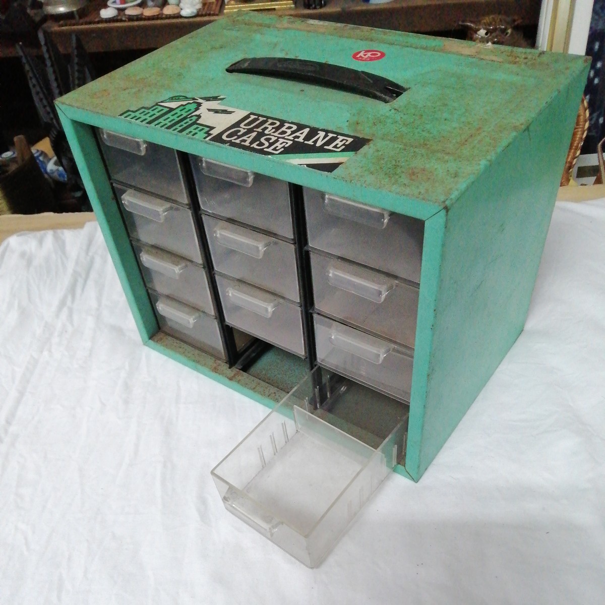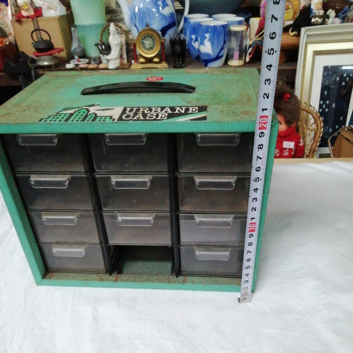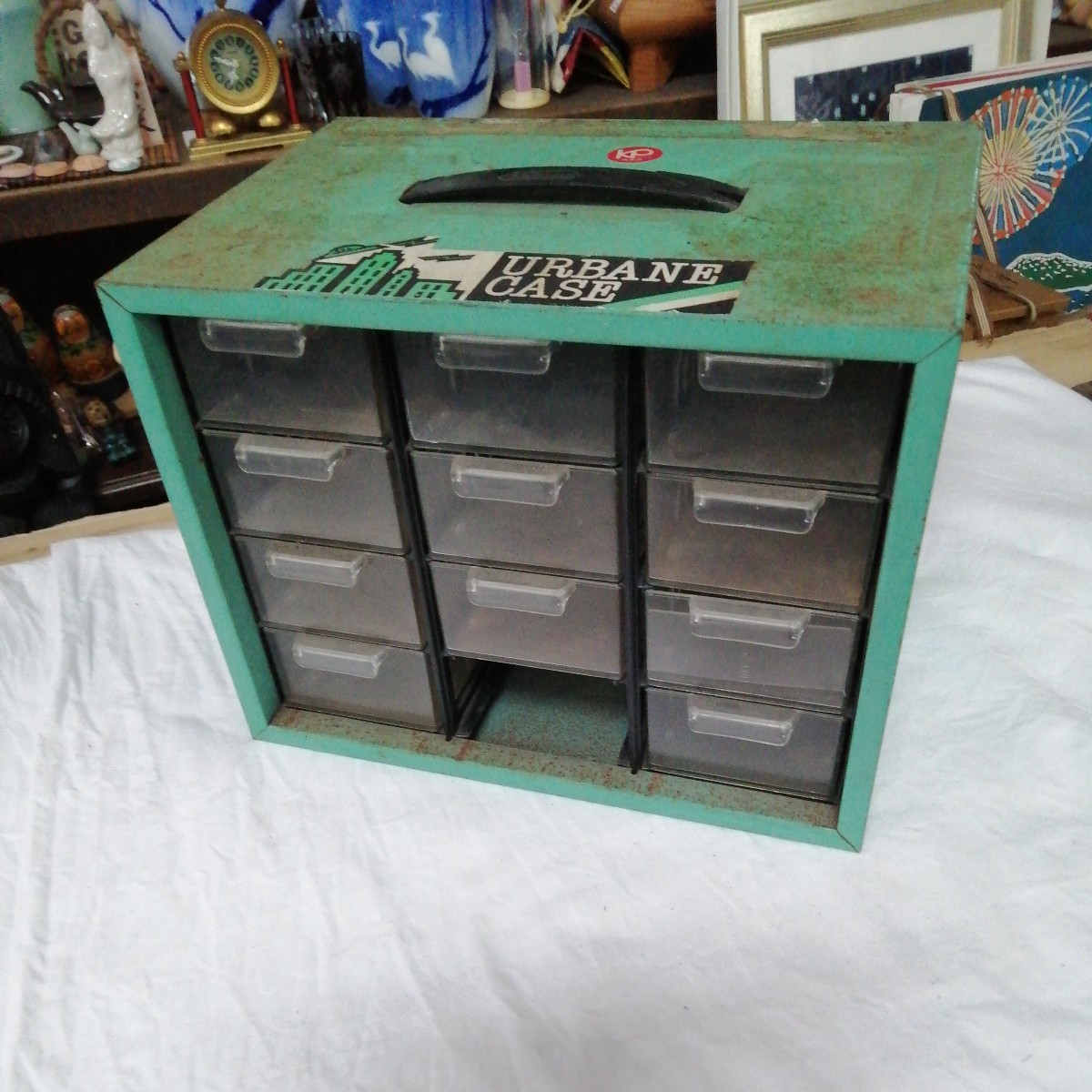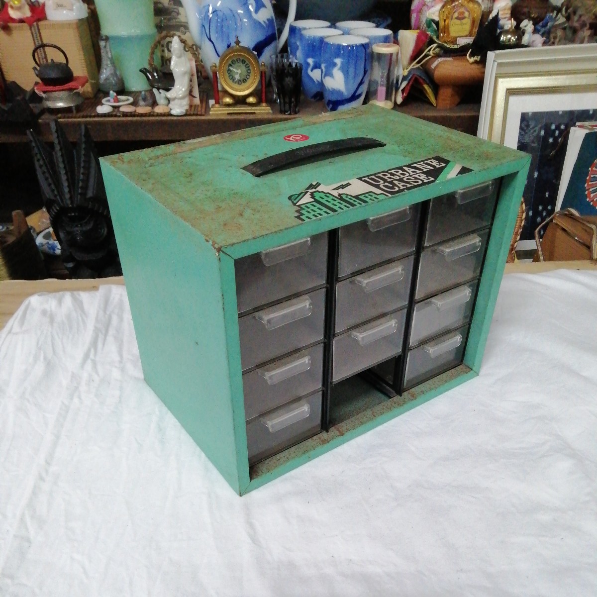 アンティーク ボックス スチール製 小物入 ガレージ Urbane CASE グリーン ヴィンテージ (約高19.7×17.1×25.5cm) シャビーな