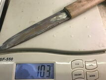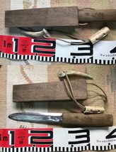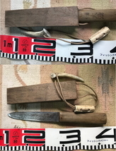 ◆毎回ご親切に違反申告をする輩がいますが何がダメなのか堂々と言って下さい。 言ってこられても当方は無視しますが(笑) ◆落札後のトラブルを防ぐ為、下記の商品説明文は、必ずお読みください。 自作鞘には蝦夷鹿角で制作した根付けが付いてます。 底には水抜き穴が開いてます。 鞘は未塗装状態です。 砥ぎのお手入れは落札者様でお願い致します。 中古品のため傷・汚れ・使用感ございます プチプチにて巻いた簡易包装になります。 ◆ ◆ ◆ ◆画像にあるメジャー、物差しは売り物ではありません。 | ||