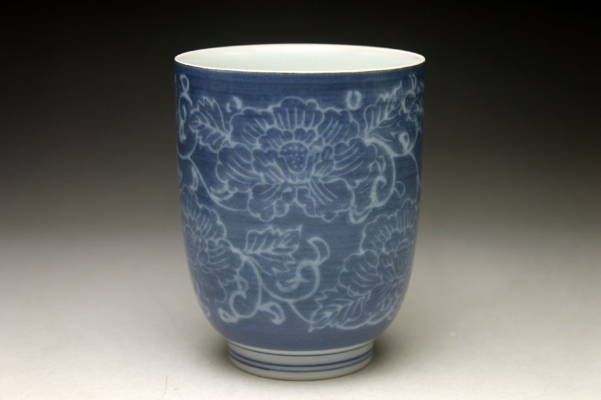 【余韻】 清水焼 平安松峰 染付唐草文 組湯呑★茶道具 共箱 無傷美品<同梱可>