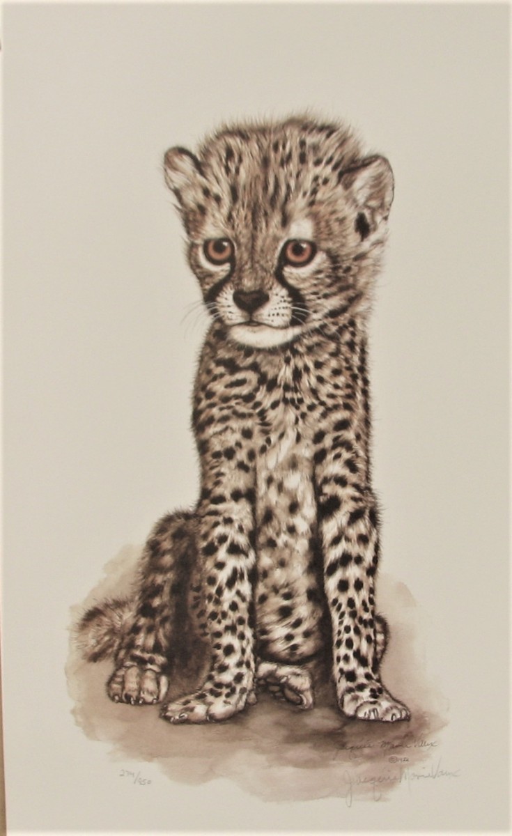 世界最高峰の動物作家,ジャッキーマリーヴォーグ「チーターカブ」オフセットリトグラフ,サイン,エディションナンバー入り