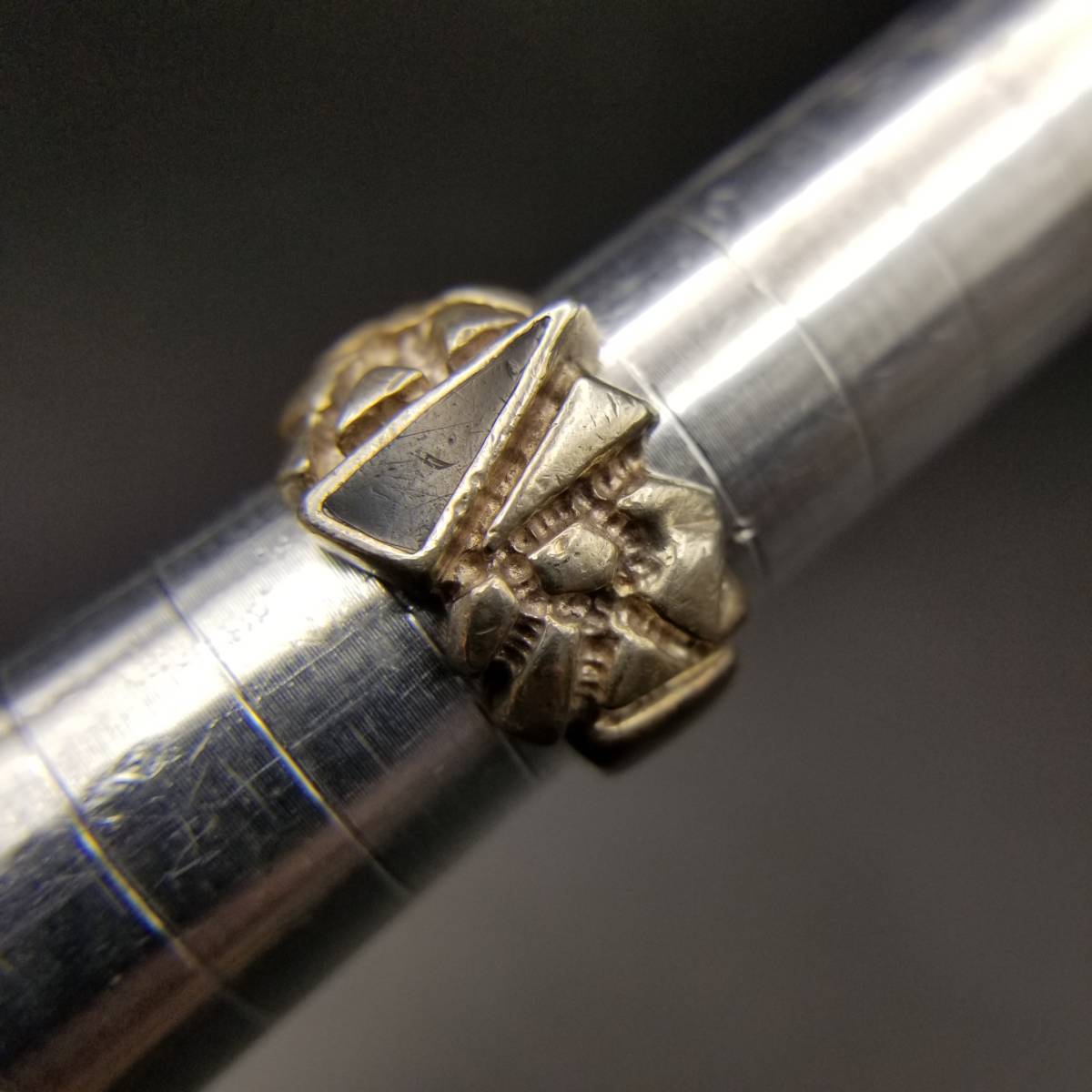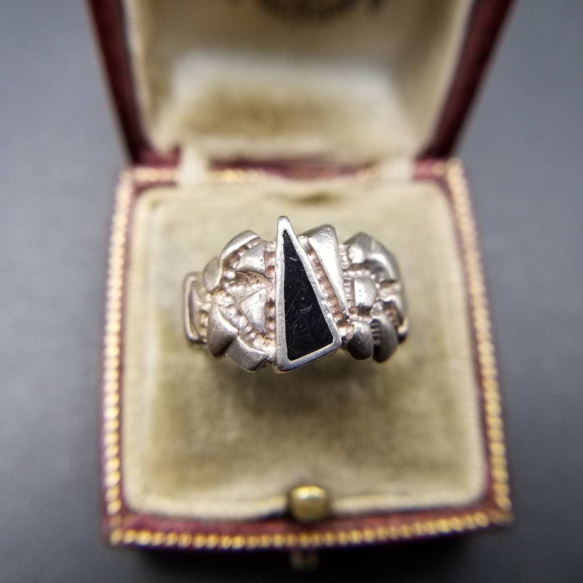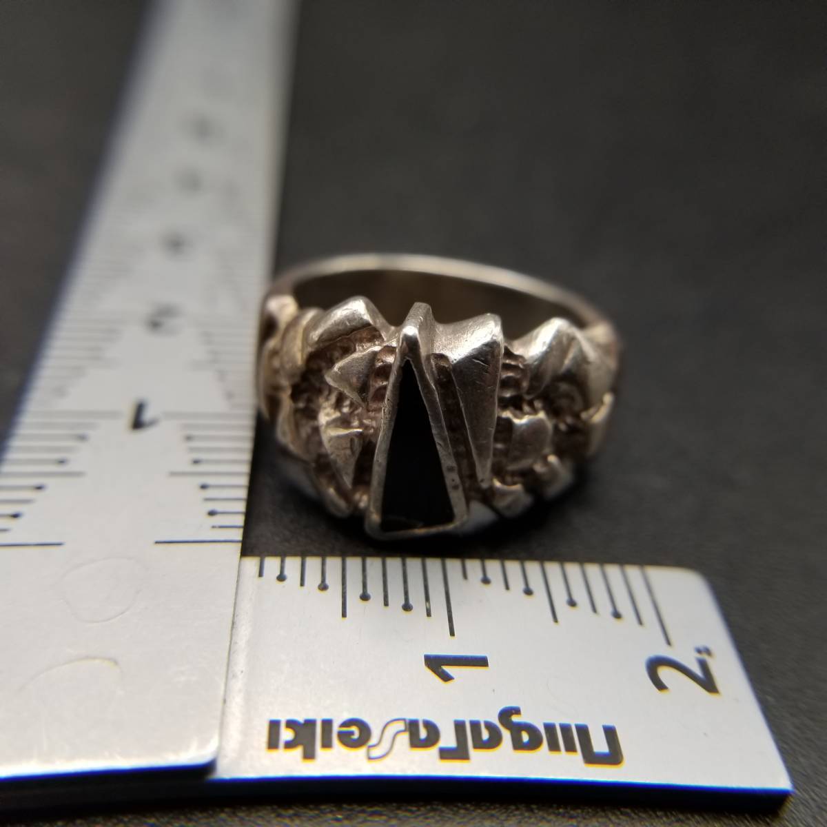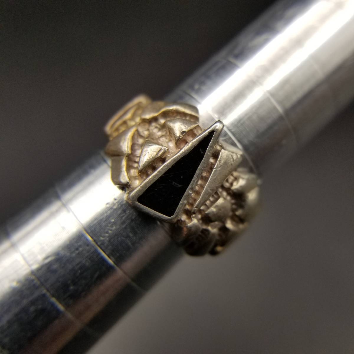 CMD ブラックオニキス 三角 インレイ ストーン クラシック デザイン 925 ヴィンテージ シルバー リング 指輪 ジュエリー 輸入 Y13-U