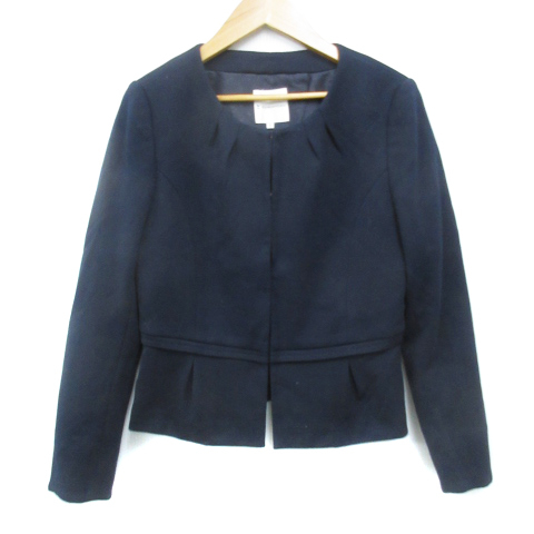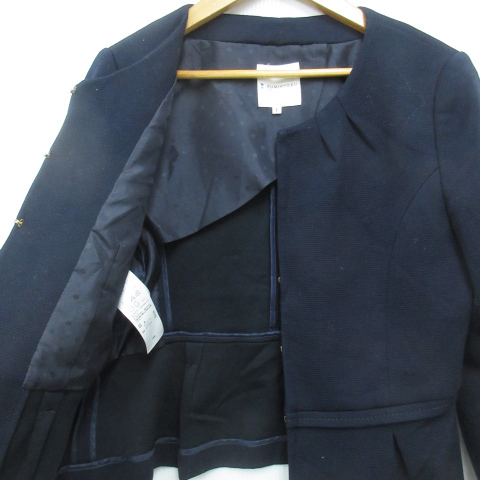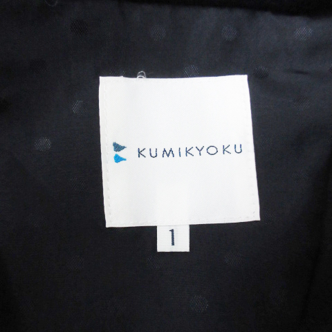 クミキョク 組曲 KUMIKYOKU ノーカラージャケット ミドル丈 総裏地 総柄 1 紺 ネイビー /FF52 レディース