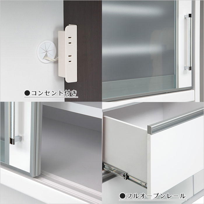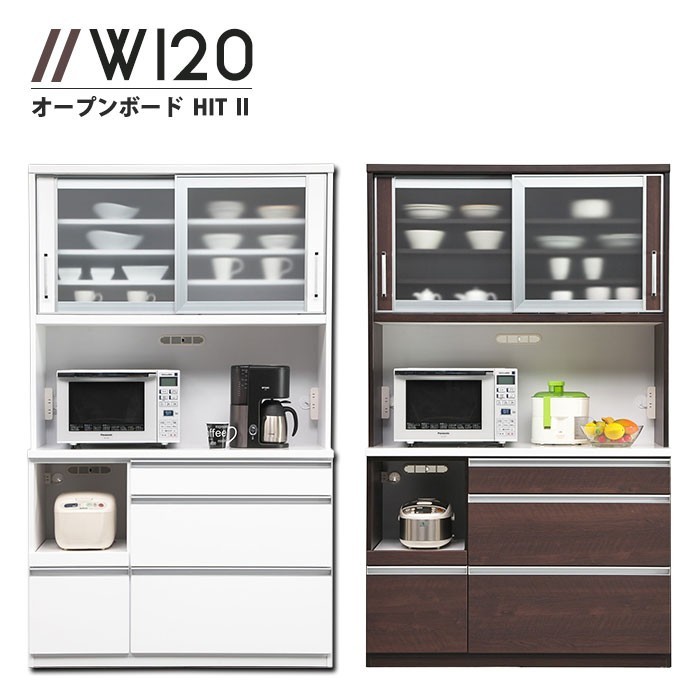 特  徴強化紙貼りのホワイトとモダンな木目ブラウンが美しい幅120cm大容量食器棚です。