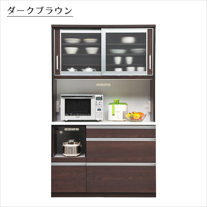 幅120cm 食器棚 完成品 レンジ台 レンジボード 引き戸 引き出し キッチン収納 コンセント付き モイス ブラウン
