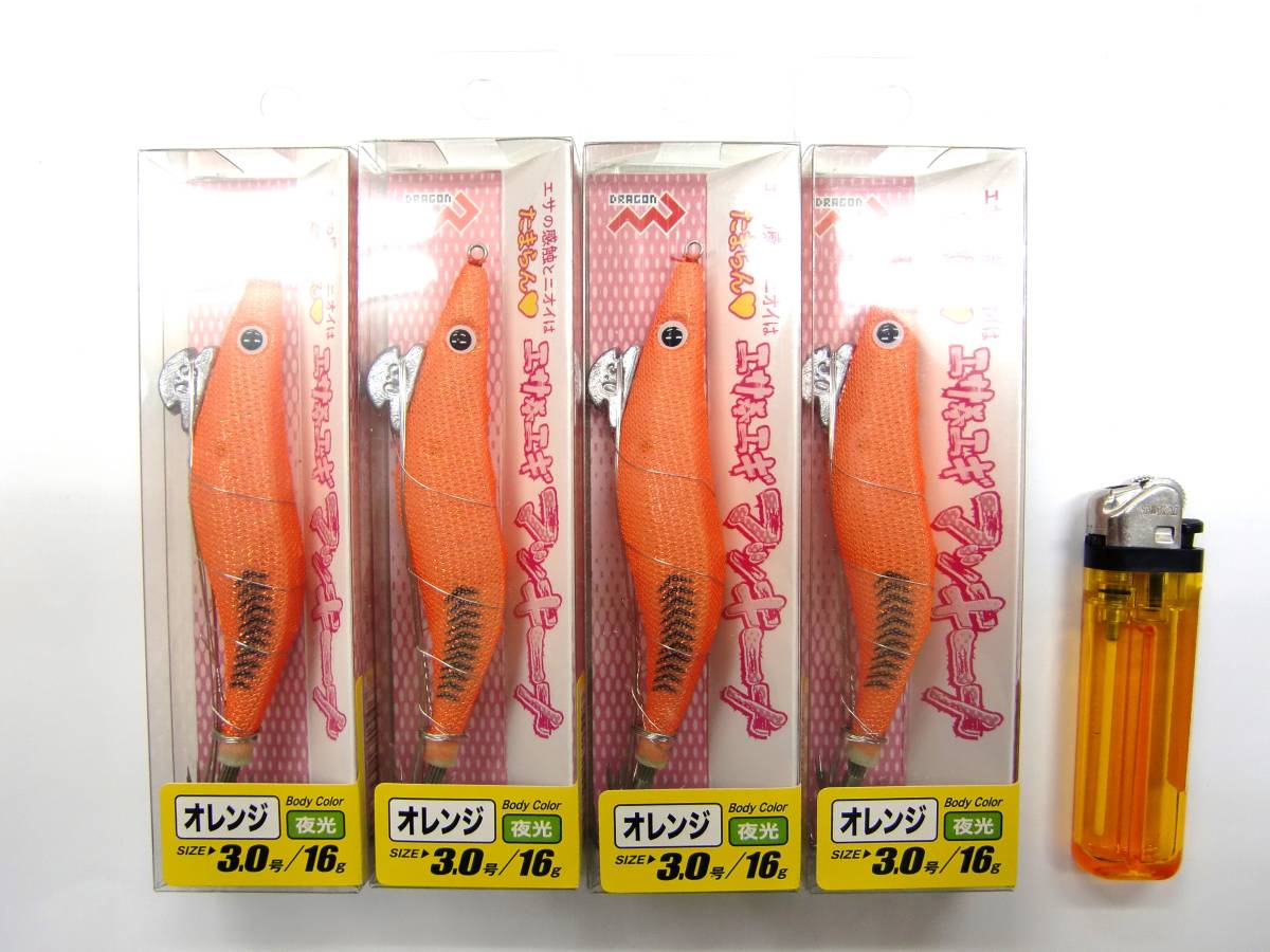 | 商品説明 | 新品のエサ巻イカエギ マッキーナ3.0号16g 4個セットになります。 セット内容 オレンジ(夜光) 4個 ライターは大きさを比較する為に使用した物で付属はしません。 詳しくは画像を参考にして入札して頂く様お願い致します。 活性が低い状態でも生エサを背負わせバイトを誘う! エサを巻くステン線付き |